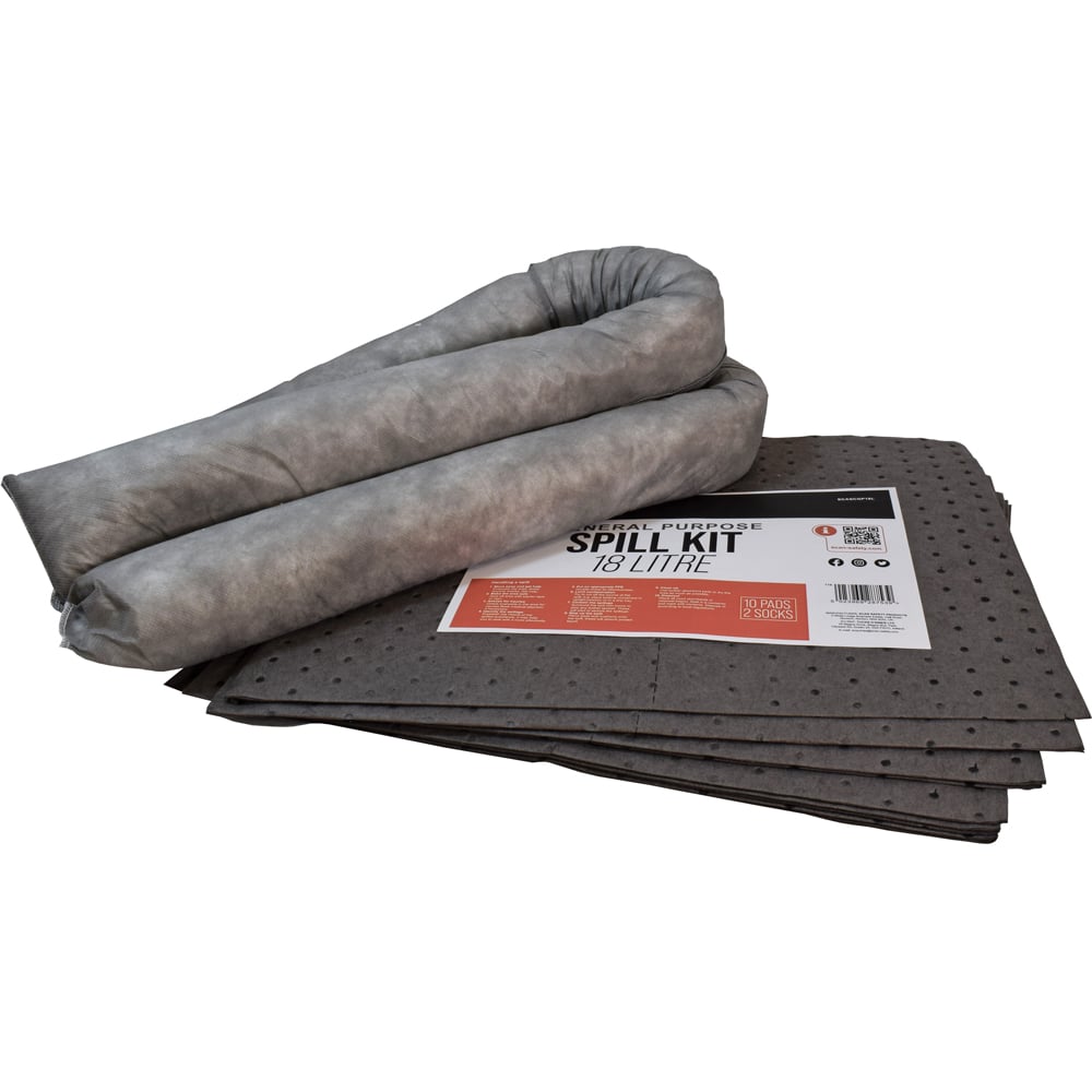 Tackle spills with ease using the Scan General Spill Kit 18L. This kit is perfect for plumbers and other tradespeople needing to handle spills of coolant, oil, water, solvents, and non-aggressive fluids. Quickly and efficiently absorb up to 18 litres of liquid with the high-performance absorbent pads and socks. The kit contains ten absorbent pads (40 x 50cm), two absorbent socks (8 x 120cm), and a disposal bag with a tie for convenient waste disposal. Ideal for boiler leaks and other plumbing emergencies.