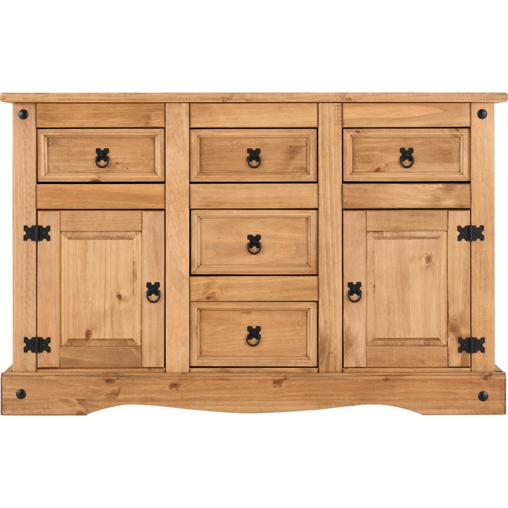Seconique Corona 2 Door 5 Drawer Distressed Waxed Pine Sideboard