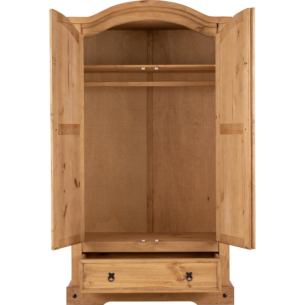 Seconique Corona 2 Door Single Drawer Distressed Waxed Pine Wardrobe