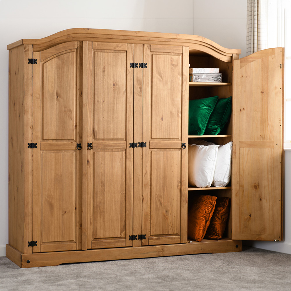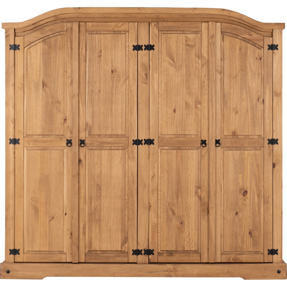 Seconique Corona 4 Door Distressed Waxed Pine Wardrobe