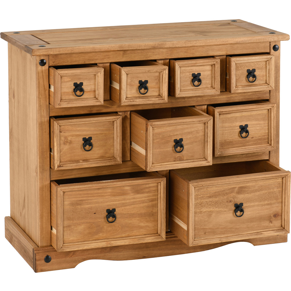 Seconique Corona 9 Drawer Distressed Waxed Pine Merchant Sideboard