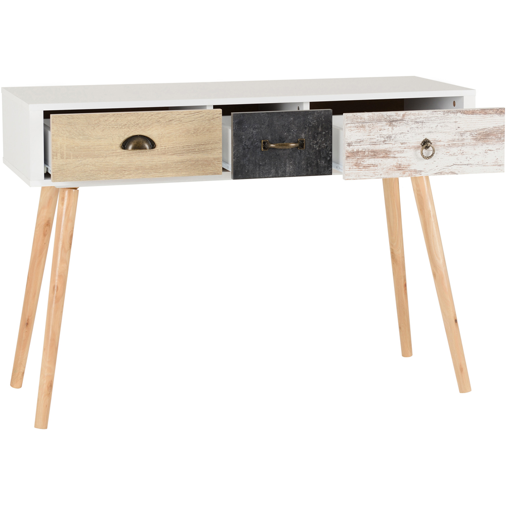 Baumhaus Trinity 3 Drawer White and Brown Small Console Table