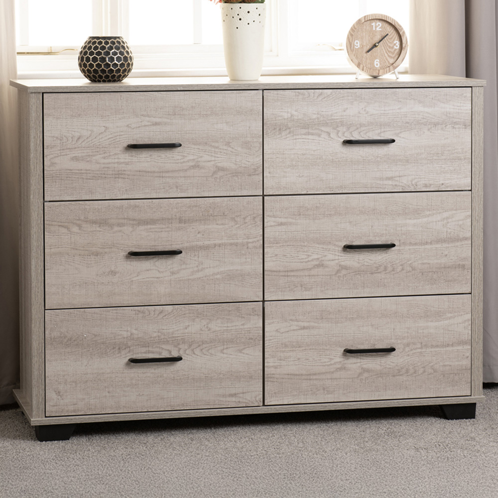Seconique Oliver 6 Drawer Light Oak Effect Chest of Drawers