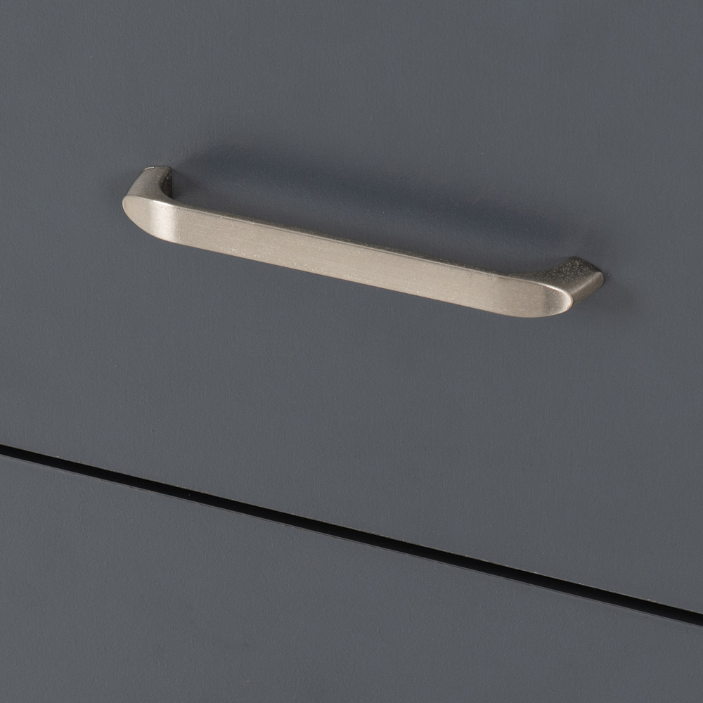 Add a touch of contemporary style to your bedroom with the Portland bedside table. Its sophisticated grey finish, accented with oak drawer tops and sleek silver hardware, creates a modern and elegant look. Two generously sized drawers provide ample storage for all your bedtime essentials, keeping everything neatly organised. This stylish piece beautifully blends form and function for a truly sophisticated bedroom update.