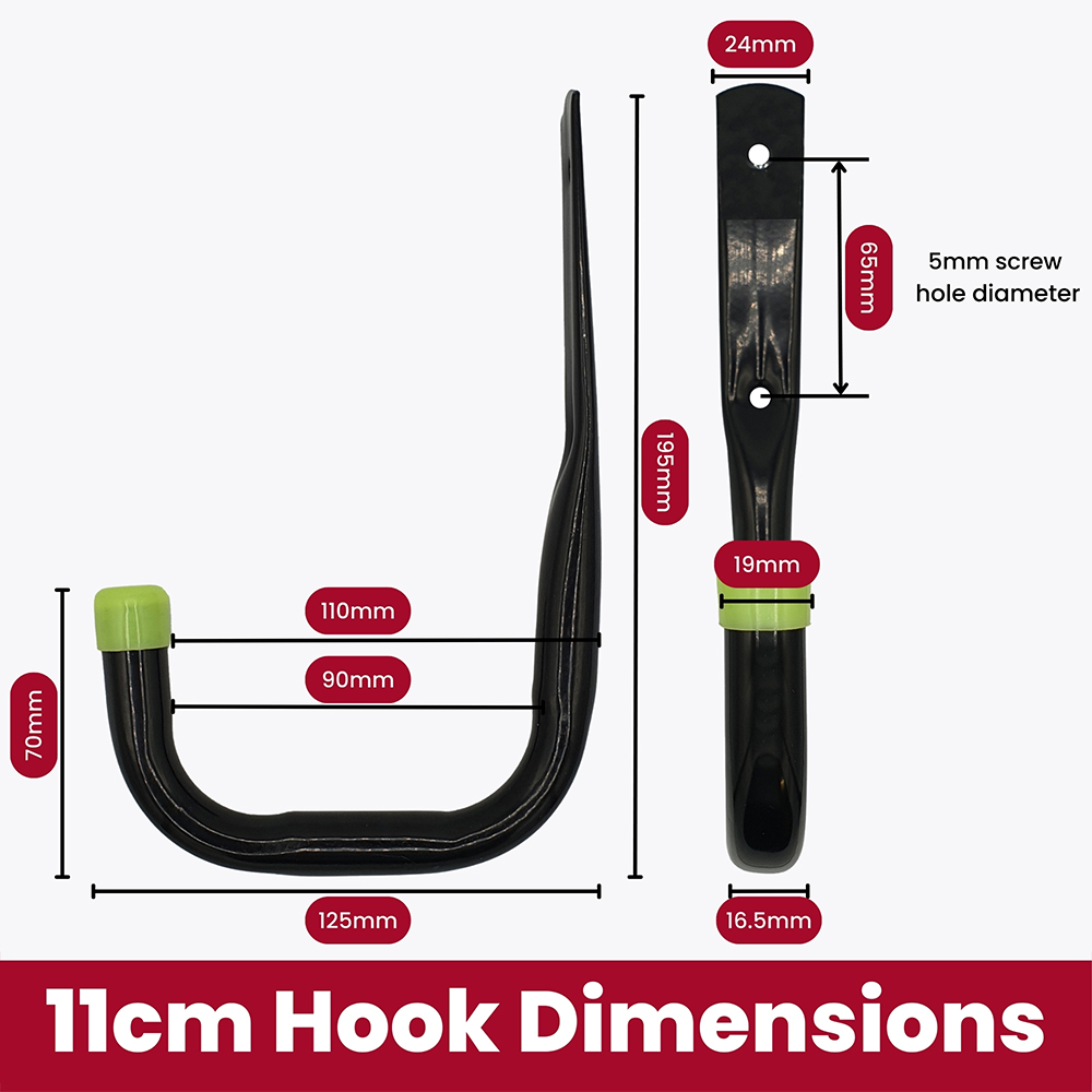 Keep your shed, garage, or workshop clutter-free with this six-piece set of black storage hooks. Each hook is a different size, perfect for hanging a variety of items, and providing versatile storage solutions.