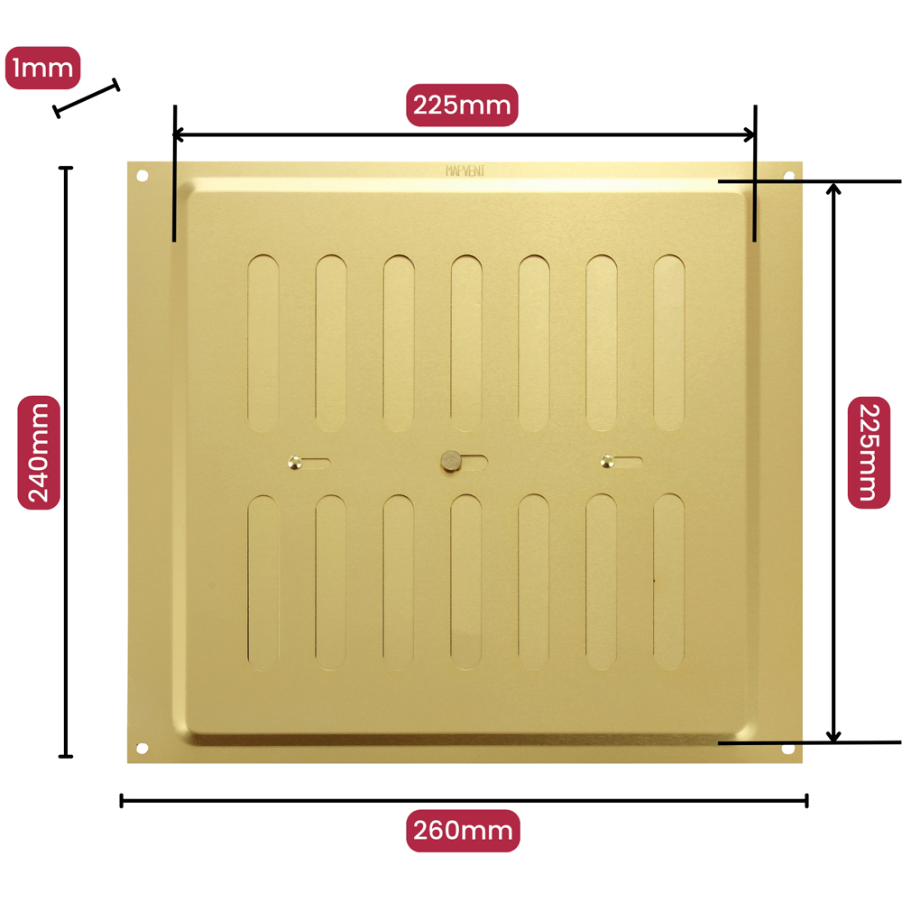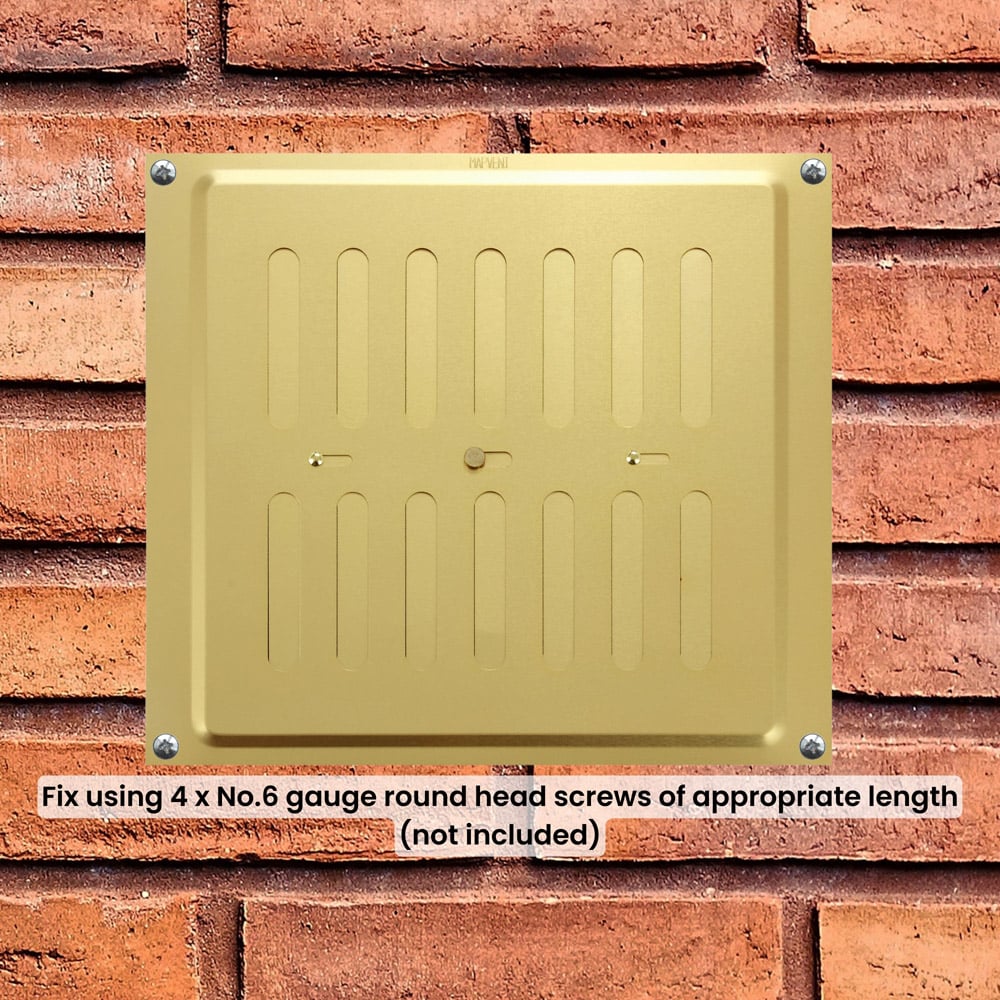 Control airflow and banish stale air, dampness, and odours with this 9", x 9", air vent. Perfectly sized for triple brick apertures (229mm x 229mm), its adjustable sliding grill lets you regulate airflow as needed. Suitable for both fresh and warm air systems, this versatile vent is ideal for interior and exterior use. Easy to install (screws not included), it provides effective ventilation, but is not suitable for venting gas appliances.