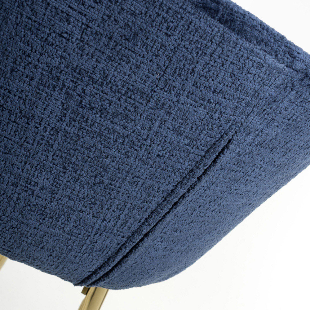 Introduce a touch of class to your kitchen or bar area with the Shankar Volero Blue Textured Bar Stool. This stool exudes quality, boasting a lavish vibe thanks to its striking gold frame. The comfortable seat is upholstered in a tactile, textured fabric, ensuring a snug seating experience. The circular backrest features distinctive D-shaped gold handles, which cleverly double as both armrests and convenient grips for entering and exiting the stool. The opulent, tubular gold-covered chrome frame provides sturdy support, complemented by a practical square footrest. Please note that this item requires assembly and is sold individually.