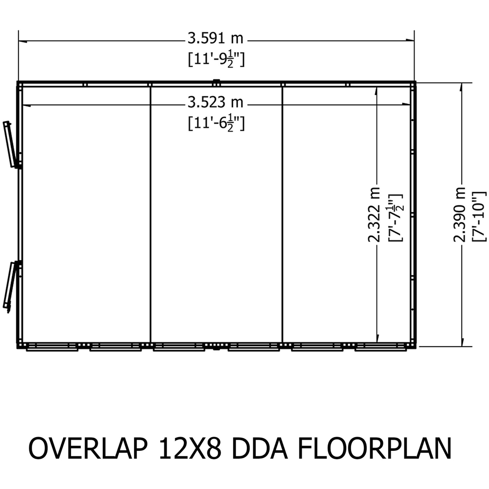 The Shire 12 x 8 feet overlap apex wooden shed offers secure storage for all your gardening needs. Its attractive design, highlighted by double doors, makes it a welcome addition to any outdoor space. Safety-glazed windows, which can be installed on either side, let in ample light while remaining securely non-opening. The double doors are conveniently located in the 8', gable end, and the high eaves ensure easy access to every corner of the shed. Please note that we are currently unable to deliver to the following postcodes: DG, TD, KA, ML, EH, G, PA, FK, KY, PH, DD, AB, IV, and KW. We apologise for any inconvenience and will inform you as soon as delivery to these areas is possible.