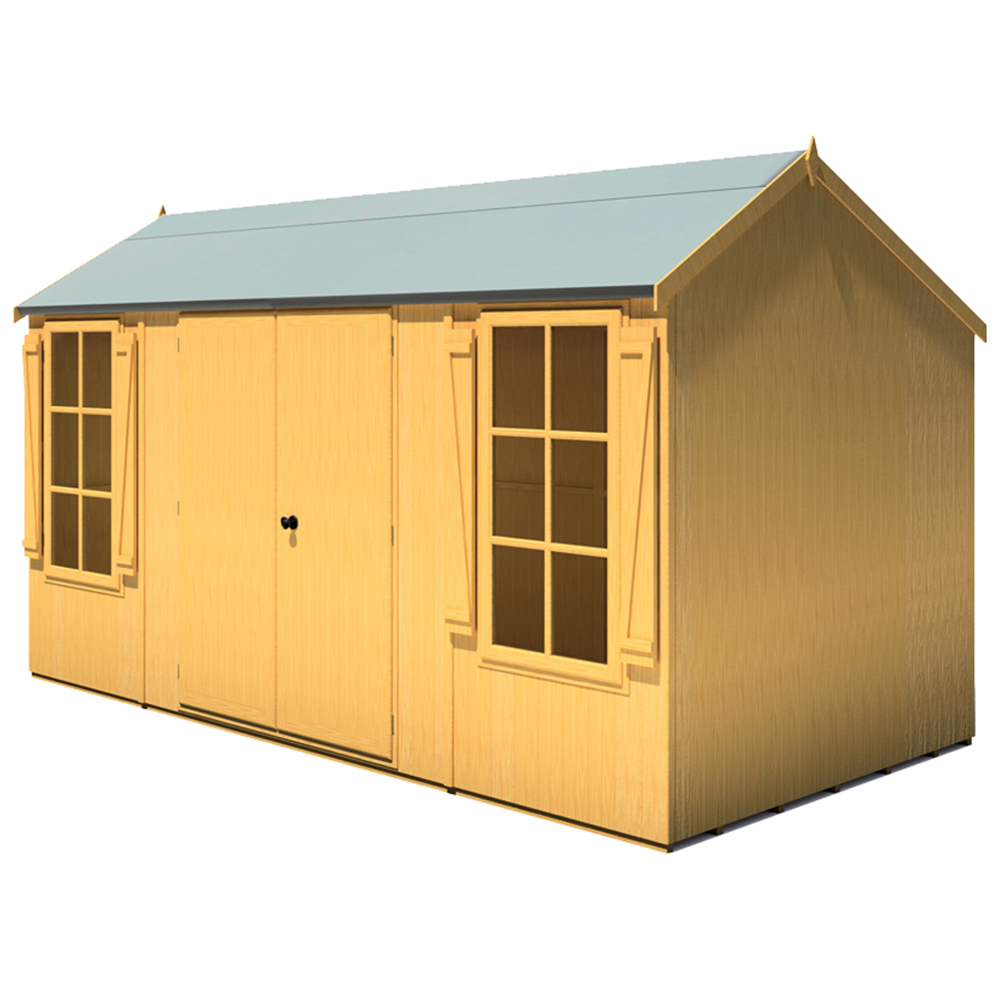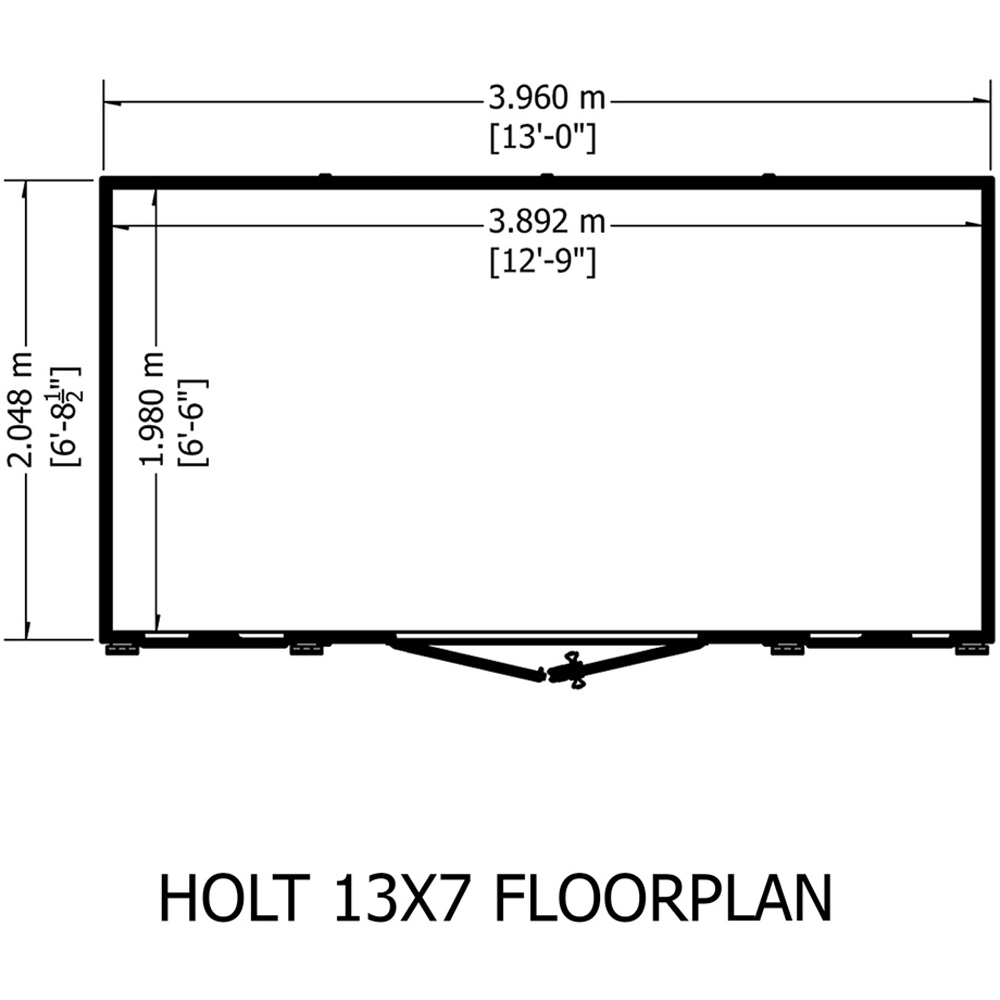 Enhance your outdoor space with the Shire 13 x 7ft Holt Apex Garden Shed. This sturdy shed boasts high-quality 12mm shiplap tongue and groove cladding and robust 34mm square framing. Natural light and ventilation are provided by an opening glass window, complemented by a single door with a rim lock—conveniently interchangeable with the window's position. The solid sheet OSB roof boards are protected by mineral roof felt, and the shed arrives with a dip-treated preservative base coat, ready for your chosen topcoat. Following your order, you'll receive a link to schedule your delivery, complete with live tracking on delivery day. Ensure a flat, level base of adequate size is prepared beforehand, grass, soil, or gravel are unsuitable due to shifting under the shed's weight. Please note that delivery is currently unavailable to DG, TD, KA, ML, EH, G, PA, FK, KY, PH, DD, AB IV, and KW postcodes. We apologize for any inconvenience and will provide updates on future delivery to these areas.