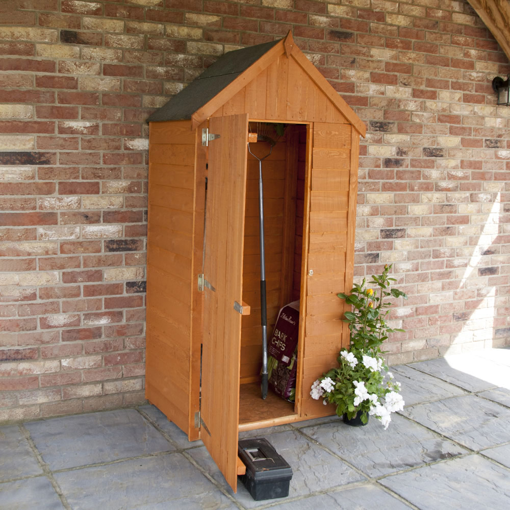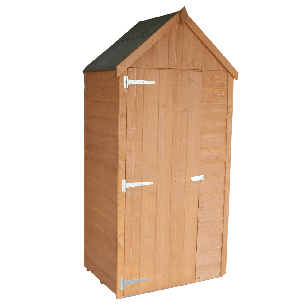 Keep your garden tools and other household items neatly organised with this Overlap Tall Tool Store. Its rustic design, crafted from high-grade, FSC-approved pine boards on a sturdy 34mm square frame, will enhance any outdoor space. The solid OSB roof and floor provide robust protection, and the store comes complete with green mineral felt roofing. (Imperial dimensions are approximate to the nearest foot, please refer to the exact metric dimensions provided.) Please note that we are currently unable to deliver to the following postcodes: DG, TD, KA, ML, EH, G, PA, FK, KY, PH, DD, AB, IV, and KW. We apologise for any inconvenience caused and will inform you when delivery to these areas is reinstated.