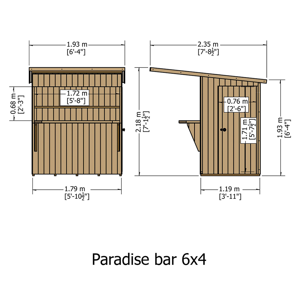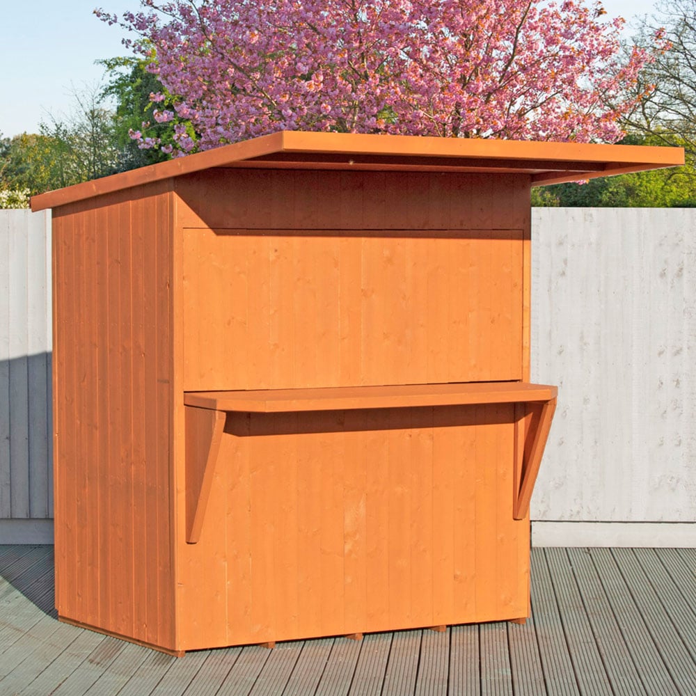 The Shire 6 x 4ft Pent Garden Bar Shed is perfect for stylish garden parties, adding extra fun to your BBQs. Its removable hatch allows for easy conversion to a practical storage shed during the winter months. Please note that we are currently unable to deliver to the following postcodes: DG, TD, KA, ML, EH, G, PA, FK, KY, PH, DD, AB, IV, and KW.