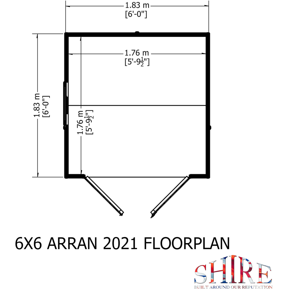 The Shire Arran Shiplap Wooden Shed provides excellent storage solutions. Constructed from high-grade, FSC-approved timber, this 6ft x 6ft shed features 12mm shiplap tongue and groove cladding and robust 34mm square framing. Wide double doors ensure easy access to the generously sized interior, ideal for housing equipment, tools, and furniture. A storm-resistant opening joinery window and tongue and groove timber flooring add to its practicality, while the solid sheet roof offers reliable protection. The shed arrives pre-treated with a preservative base coat, ready for your personal touch of paint or stain. Always factor in roof overhang and necessary access space during assembly and subsequent treatment. For accurate dimensions, refer to the metric measurements, imperial figures are rounded for guidance only. Please note that delivery is currently unavailable to the following postcodes: DG, TD, KA, ML, EH, G, PA, FK, KY, PH, DD, AB, IV, and KW.