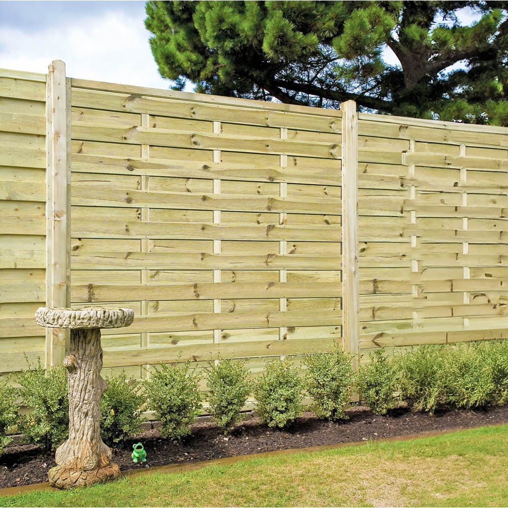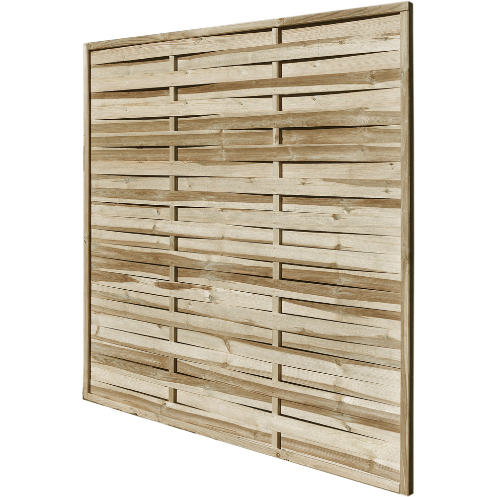 Enhance your outdoor space with the sophisticated Shire Elite Esprit 6 x 6ft square fence panel. This contemporary panel boasts a clean aesthetic, achieved through sturdy, planed, rounded, and grooved horizontal slats securely fitted within a rebated frame. Its square top adds a modern touch. Pressure-treated for lasting protection, this panel is built to endure. Please note that this panel conforms to European sizing, measuring 180cm wide. Delivery is currently unavailable to the following postcodes: DG, TD, KA, ML, EH, G, PA, FK, KY, PH, DD, AB, IV, and KW. We apologise for any inconvenience caused and will update you when delivery to these areas resumes.