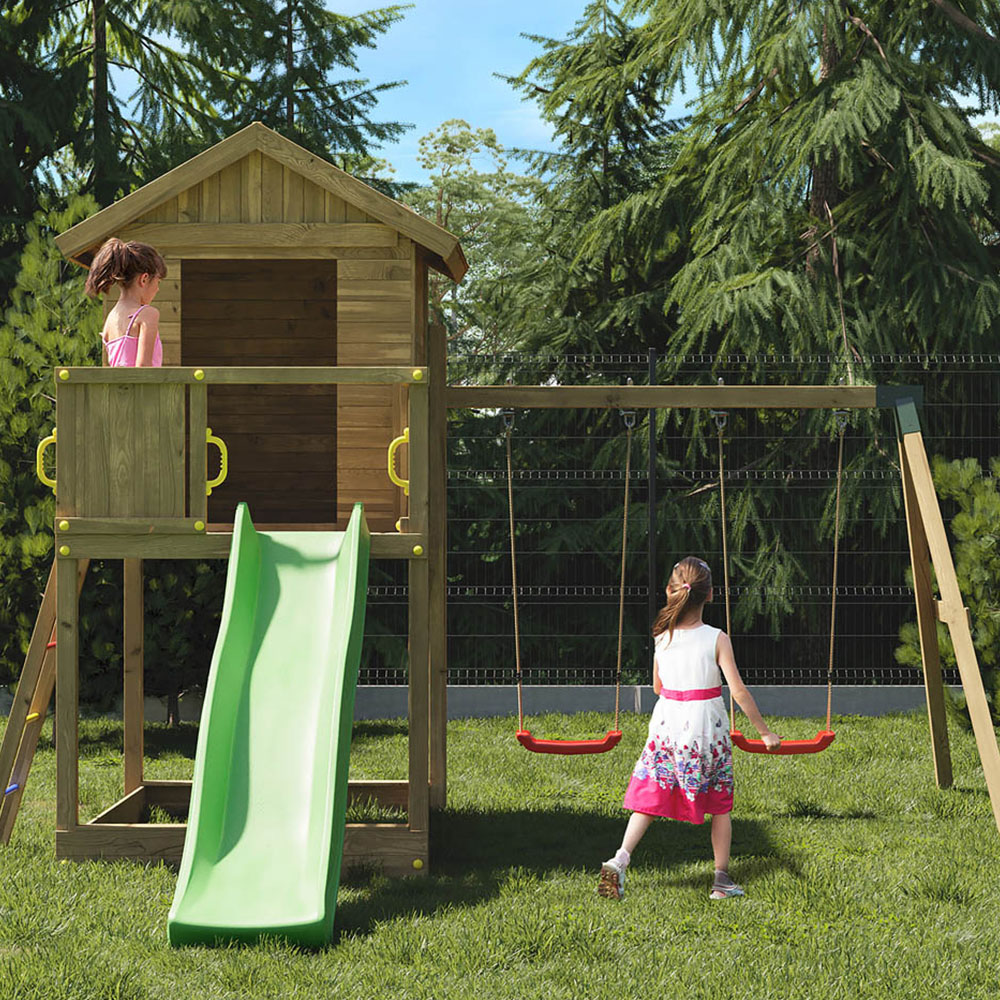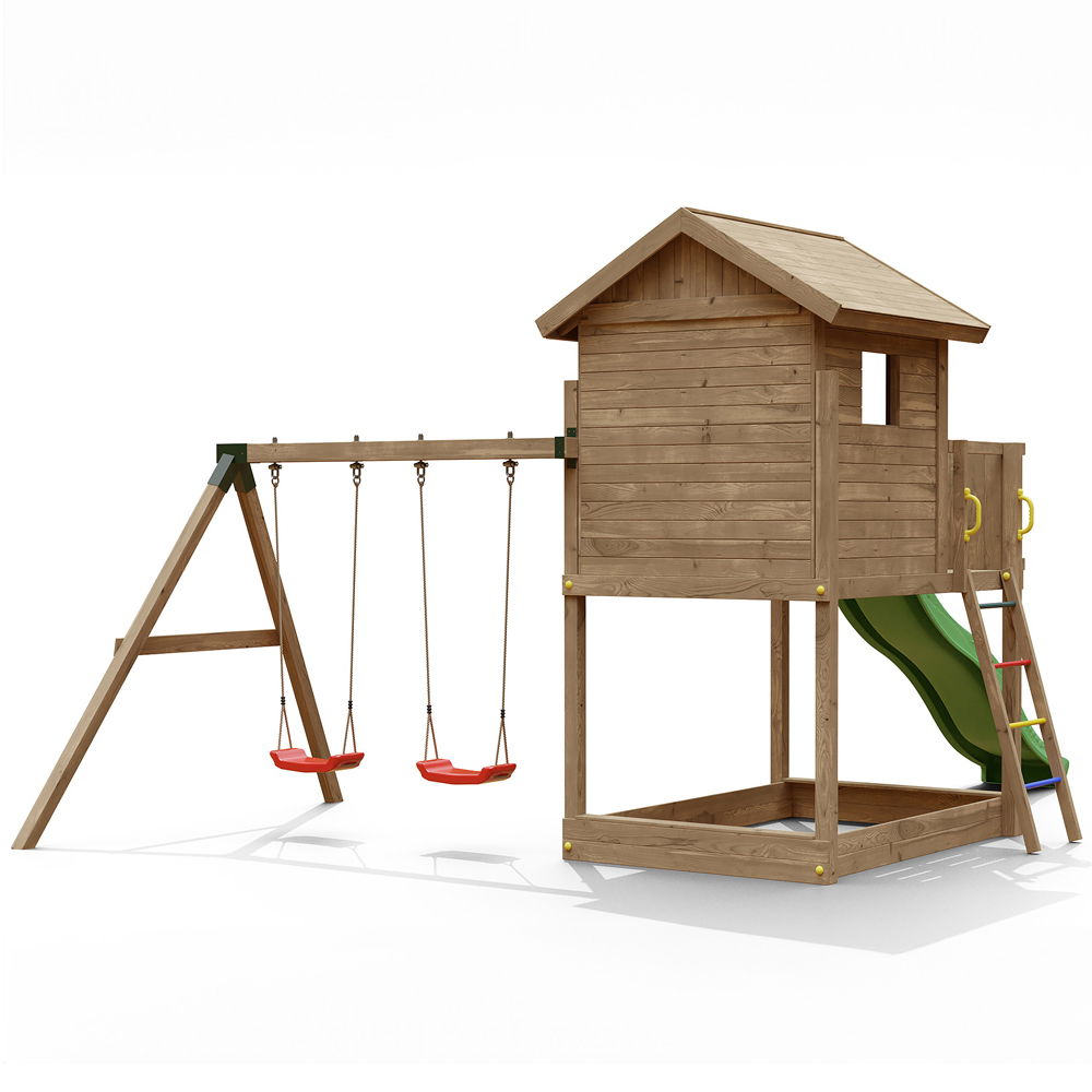 The ultimate adventure awaits with the Shire Galaxy Mixter Kids Wooden Multi Play Set! This amazing play fort will provide endless hours of outdoor fun for your little ones. Built from pressure-treated softwood and securely anchored to the ground for safety, it's designed to the highest standards. Get ready for imaginative play and countless happy memories! Following your order, you'll receive a link to schedule your delivery. On delivery day, you'll get live tracking updates. Please note: Currently, delivery is unavailable to DG, TD, KA, ML, EH, G, PA, FK, KY, PH, DD, AB, IV, and KW postcodes.