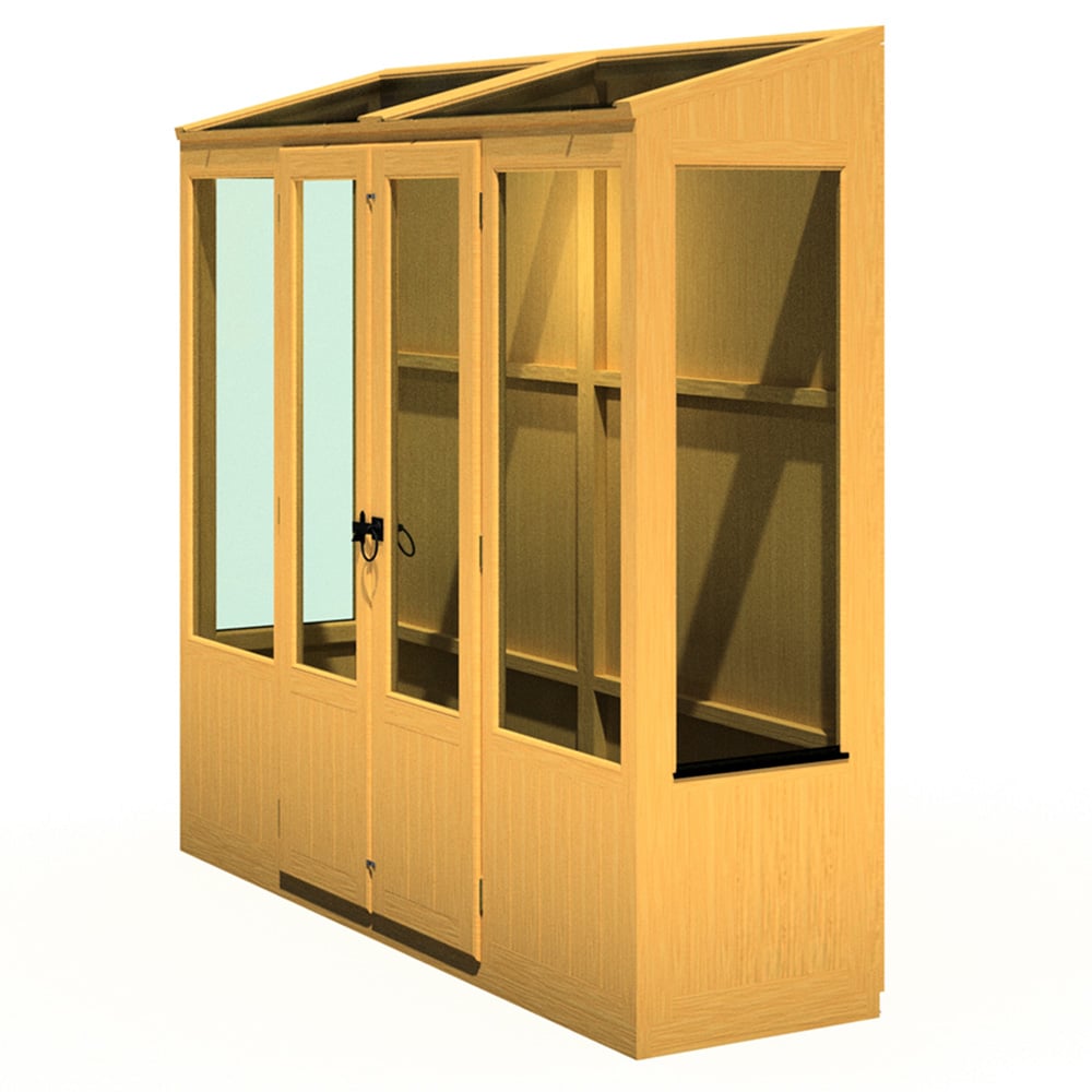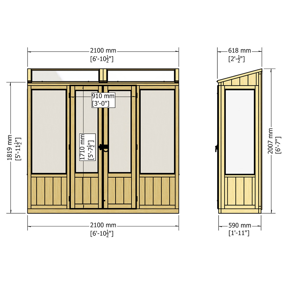 The Holme lean-to greenhouse, a compact 7 x 3ft (approx. 2.1m x 0.9m) design, offers all the benefits of a timber greenhouse in a smaller footprint. Its low, tongue and groove wooden panels provide a traditional aesthetic. Glazed with toughened glass, it features a double door with a traditional gate latch handle and an opening roof for ventilation. The greenhouse sits on a pressure-treated base rail, a level, stable base is required for assembly (grass, soil, or gravel are unsuitable). Constructed from high-grade, FSC-certified Northern European timber, it boasts a honey brown basecoat preservative treatment, ready for a customer-applied topcoat. All fixings and assembly instructions are included. Please note: Imperial measurements are rounded, refer to metric dimensions for precision. Account for roof overhang and access during construction and treatment. Currently, delivery is unavailable to DG, TD, KA, ML, EH, G, PA, FK, KY, PH, DD, AB, IV, and KW postcodes.