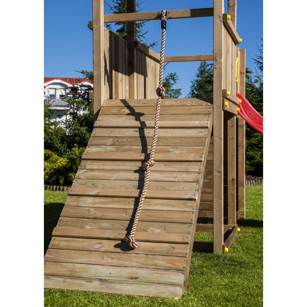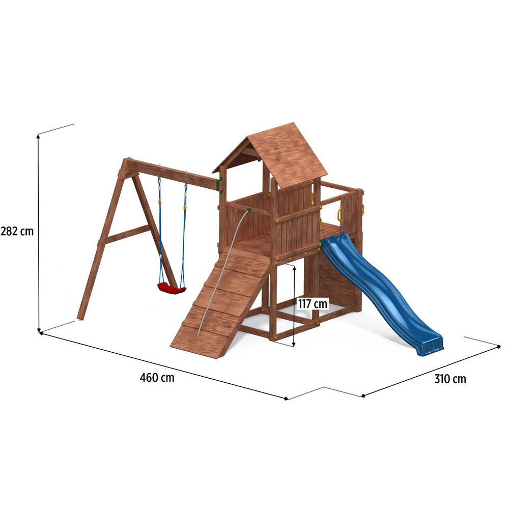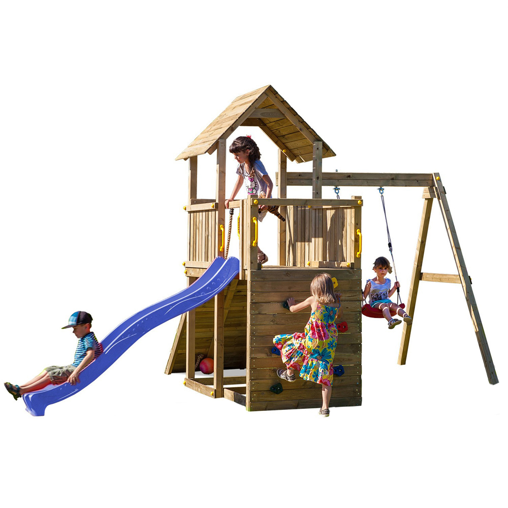 Wow! Unleash your child's inner adventurer with the Shire Kids Adventure Peaks Fortress 3 with Single Swing! This timber play tower is packed with exciting features: a rock-climbing wall, a swing, a spacious tower area, and an adventurous rope climbing wall. It's designed to make every child happy and active, boosting both their physical and mental wellbeing. The set includes all assembly tools and an assembly manual with anchors for secure ground fixing. Get ready for hours of outdoor fun! Please note: Delivery is currently unavailable to DG, TD, KA, ML, EH, G, PA, FK, KY, PH, DD, AB IV, and KW postcodes. We apologize for any inconvenience and will update you when delivery to these areas resumes.