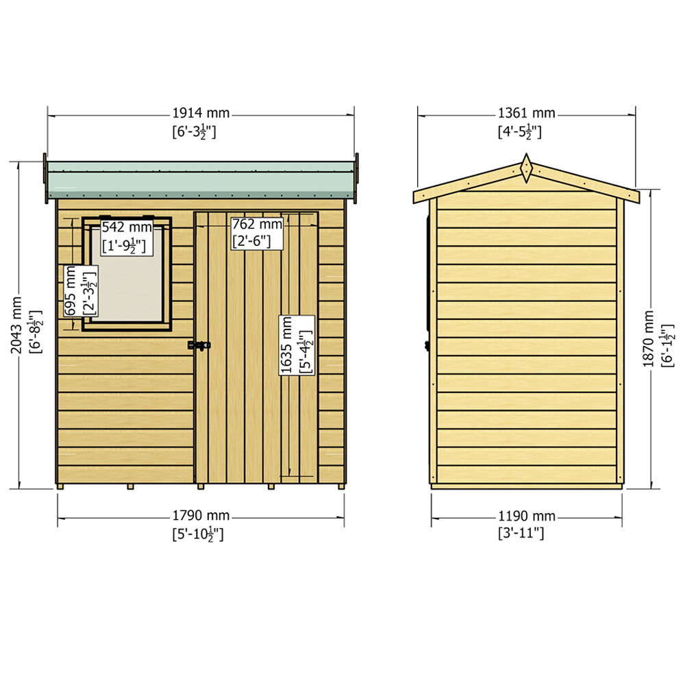 This classic 6ft x 4ft Lewis-style D reverse apex shed is a must-have for any garden. Its generous eaves height makes it perfect for use as a workshop or storage space. Crafted from high-quality 12mm shiplap timber for the walls, roof, and floor, all supported by robust 34mm square framing, this shed offers lasting durability. The door features a full-length security hinge and pad bolt, while the windows are fixed. Pre-hung door and window frames simplify assembly, showcasing superior traditional joinery. A base coat preservative is applied, ready for your finishing touch after construction. All necessary fixings and mineral roof felt are included, and the shed arrives flat-packed with comprehensive instructions. Please note that the dimensions stated are external wall measurements, for precise details, refer to the metric dimensions. A flat, level base of sufficient size is required for assembly—grass, soil, or gravel are unsuitable. Currently, delivery is unavailable to DG, TD, KA, ML, EH, G, PA, FK, KY, PH, DD, AB, IV, and KW postcodes.