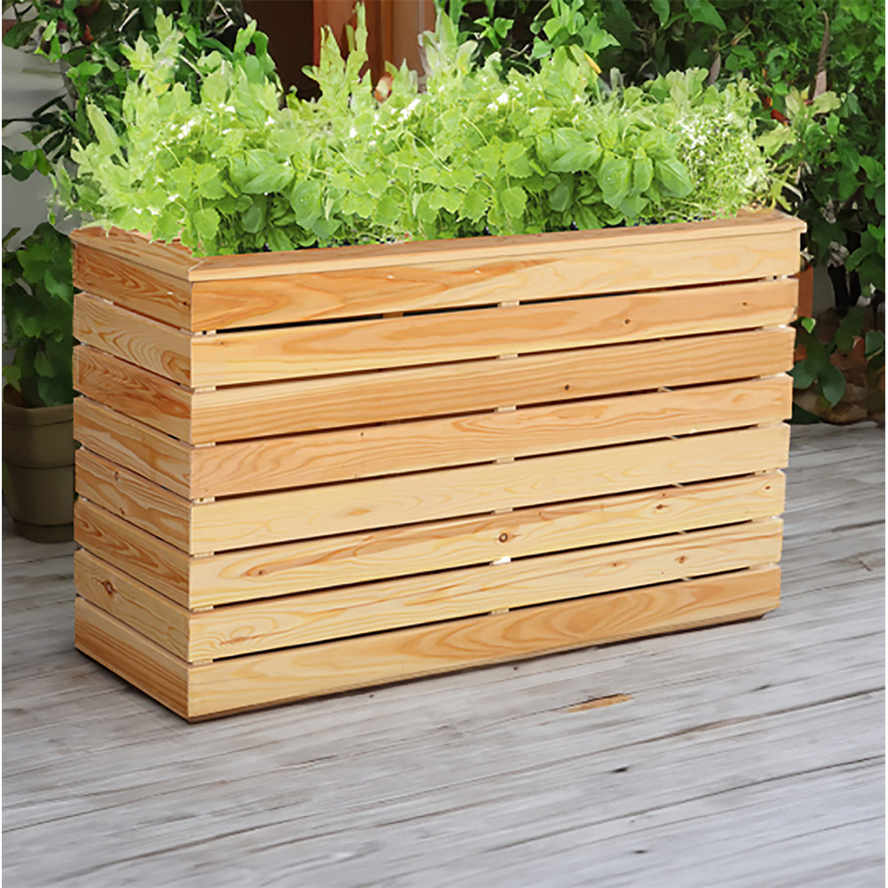 Elevate your home or garden with the Shire Marta Larch Planter. Crafted from durable larch wood with a sleek finish, this planter provides the perfect setting for your favourite plants, whether indoors or outdoors. Pre-assembled for your convenience, it includes fleece lining, pre-drilled holes, and all necessary screws. The slatted box design features 16 x 80mm chamfered edge boards. Please note: Delivery is currently unavailable to DG, TD, KA, ML, EH, G, PA, FK, KY, PH, DD, AB, IV, and KW postcodes. We will update you when this changes.