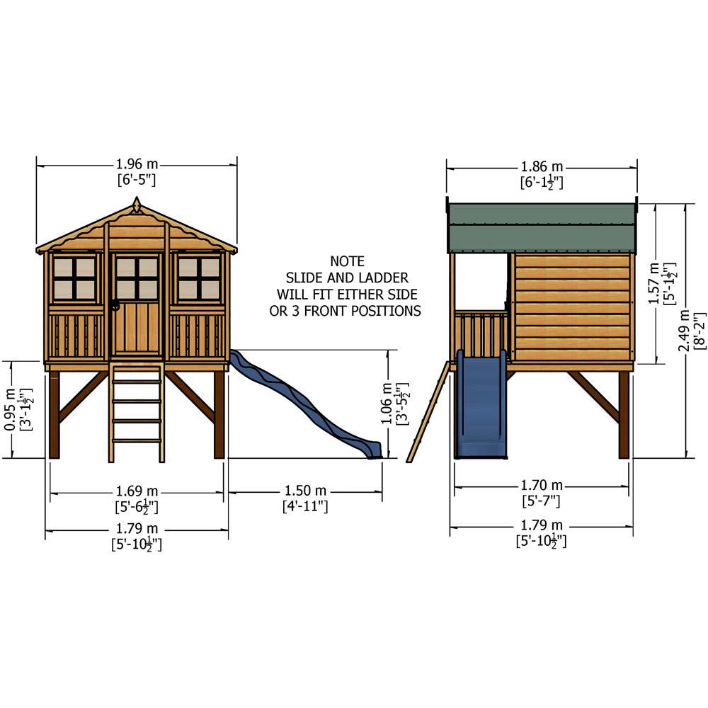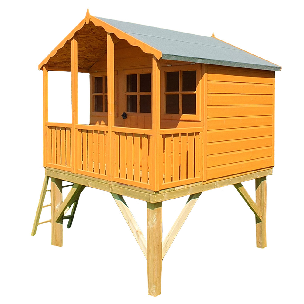 The Shire Stork Playhouse: a delightful garden addition where children's imaginations can flourish. Crafted from high-grade FSC-approved Northern European pine shiplap boards, this sturdy playhouse features mortice and tenon jointed opening windows and half-glazed doors, all ensuring quality and durability. Safety is paramount, it meets EN71 safety standards, carries the CE mark, and includes a full-length safety hinge on its perspex-glazed door. The honey brown base coat finish provides a blank canvas for your personal touch – paint or stain it to match your garden's style. Assembly instructions are included. Please note that we are currently unable to deliver to the following postcodes: DG, TD, KA, ML, EH, G, PA, FK, KY, PH, DD, AB, IV, and KW.