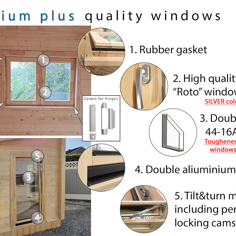 Make an extremely useful and versatile addition to your home with this Shire's Log Cabin Garage with Carport. It features walls constructed from interlocking timbers that are an impressive 44mm thick. There is a part glazed side door and two opening windows on each side wall. All glazing is toughened double-glazed glass units. The double door and side door are both fitted with a high-quality silver door handle and mortice lock. The apex roof is 19mm timber board tongue and groove completed externally with roof felt. There is no floor supplied and the walls sit on a 44 x 60mm base rail. The building is supplied untreated and ready for you to paint or stain immediately after assembly with a good quality wood paint or stain. Where dimensions are critical please check internal (floor) sizes as building dimensions are to the external edge of the individual boards that make up the cabin and will include the crossover of the logs. Please note that log cabins are supplied as individual log boards that are assembled length by length, building up from the floor; not pre-made panels. Assembly instructions and roof felt are included.