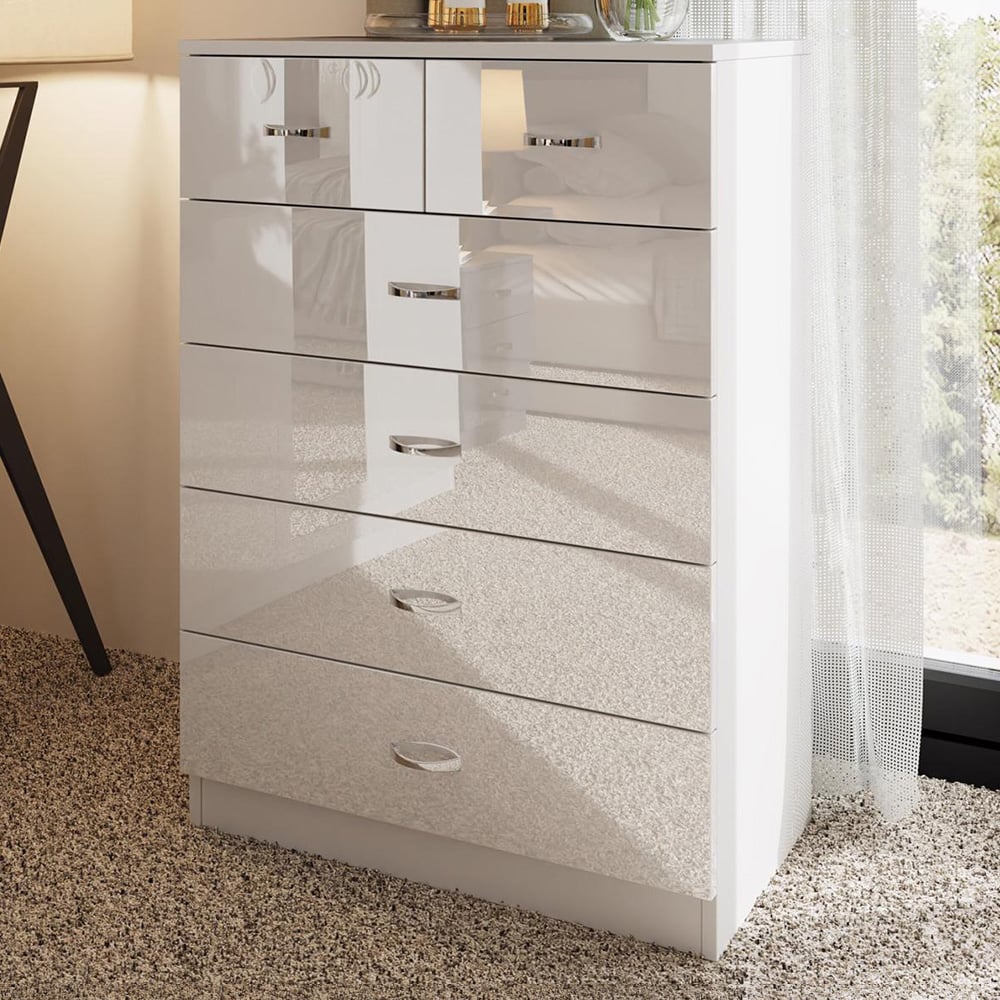 FWStyle Chilton 6 Drawer White Gloss Chest of Drawers
