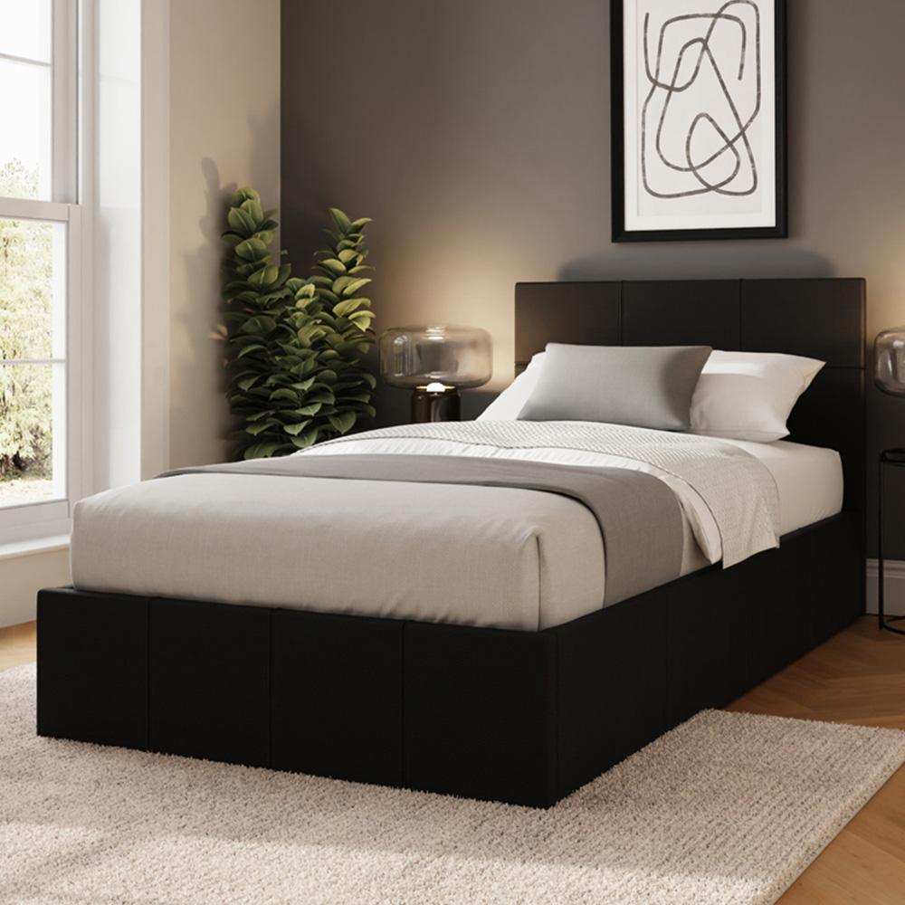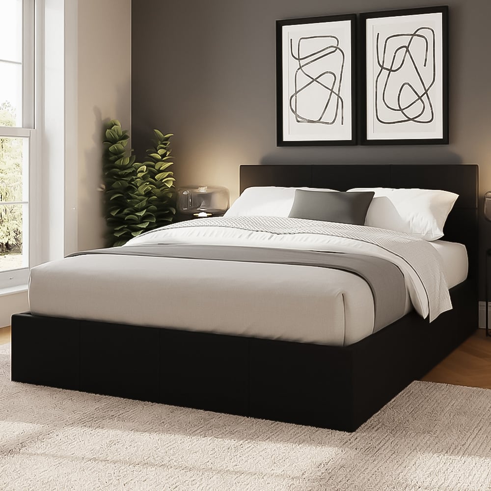 GFW Small Double Black End Lift Ottoman Bed with Stitched Headboard