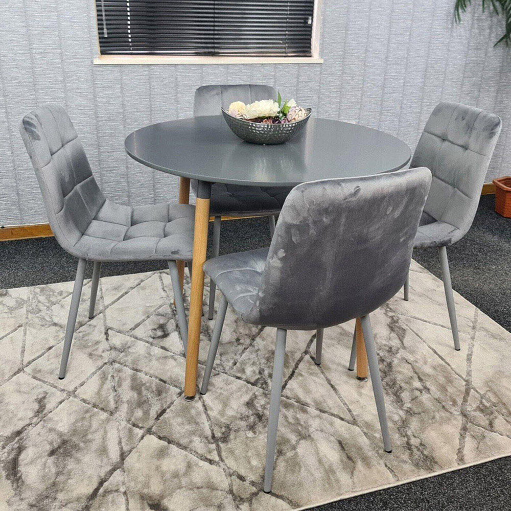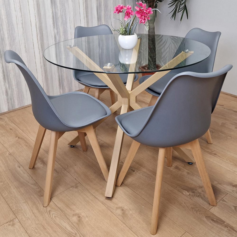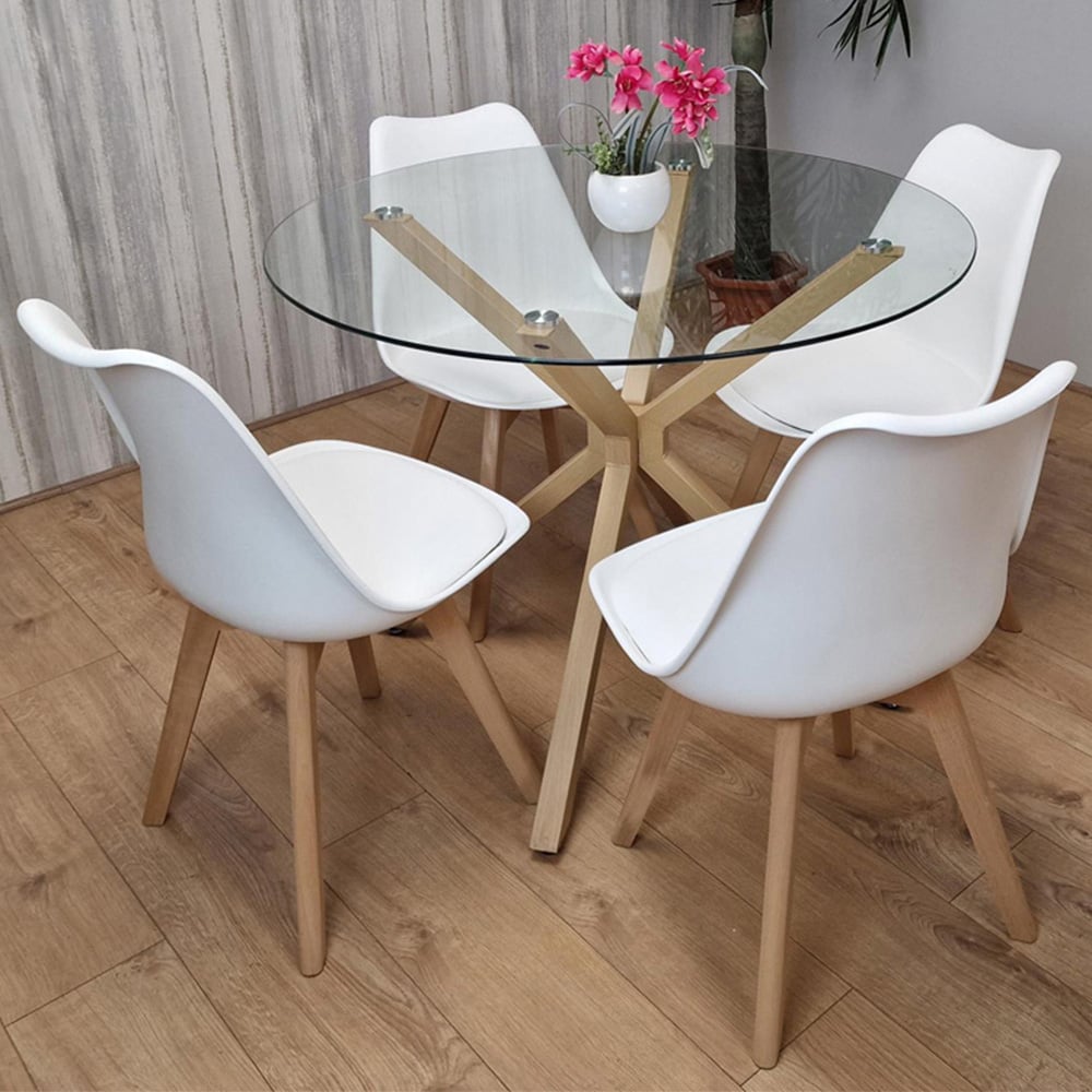 Portland 4 Seater Round Dining Table Set Oak Effect and Cream