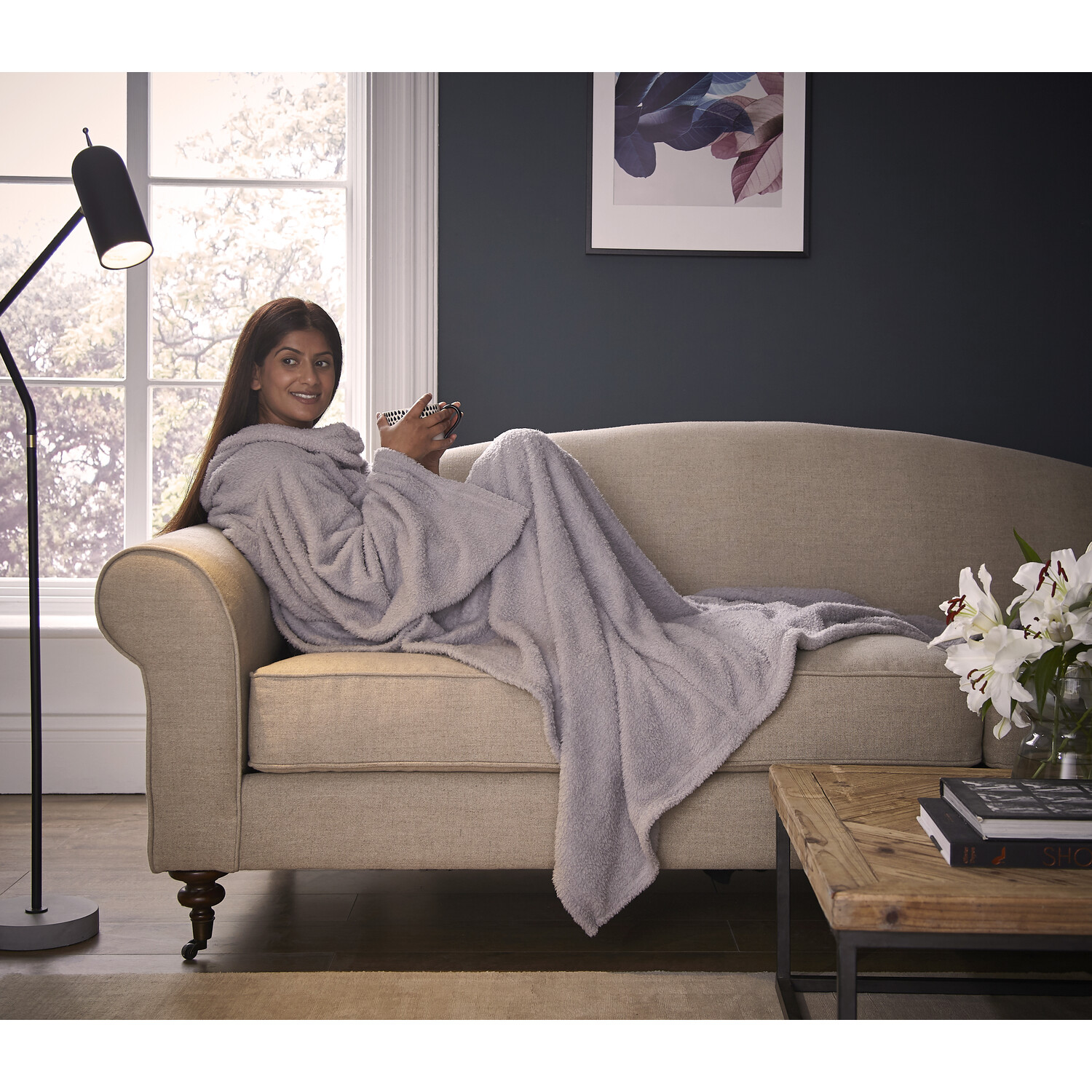 This Silentnight Snugsie Sleeved Blanket keeps your body covered but your hands free. This ultra-soft, lightweight, warm fleece blanket is perfect for the cooler months and comes with an integrated foot pocket to keep your toes toasty too. The supersized design is a one-size-fits-all, and can be folded up to become a fleece cushion when you're not wrapped up in it.