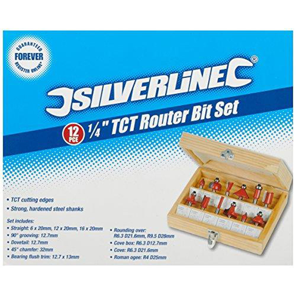 Silverline TCT Router Bit Set 1/4 inch 12 Piece