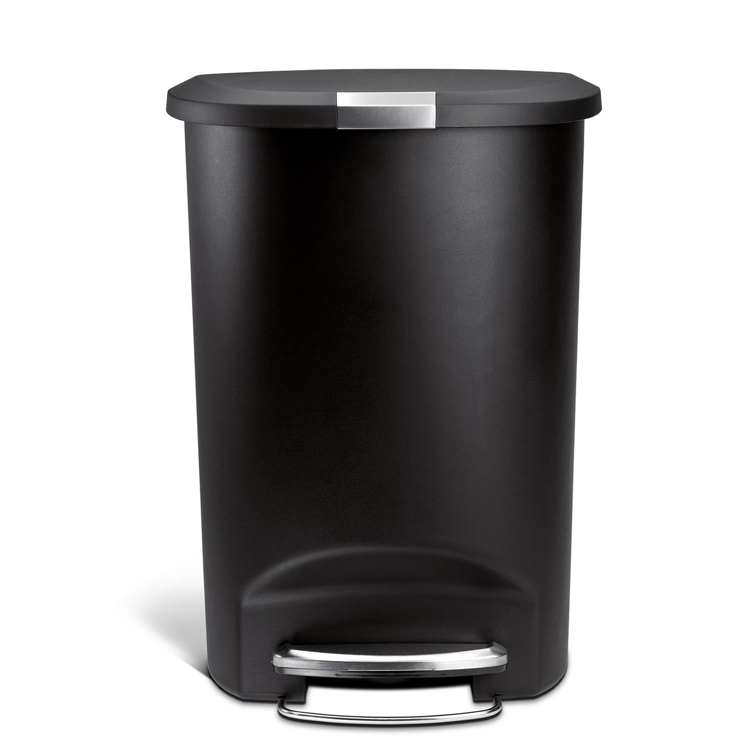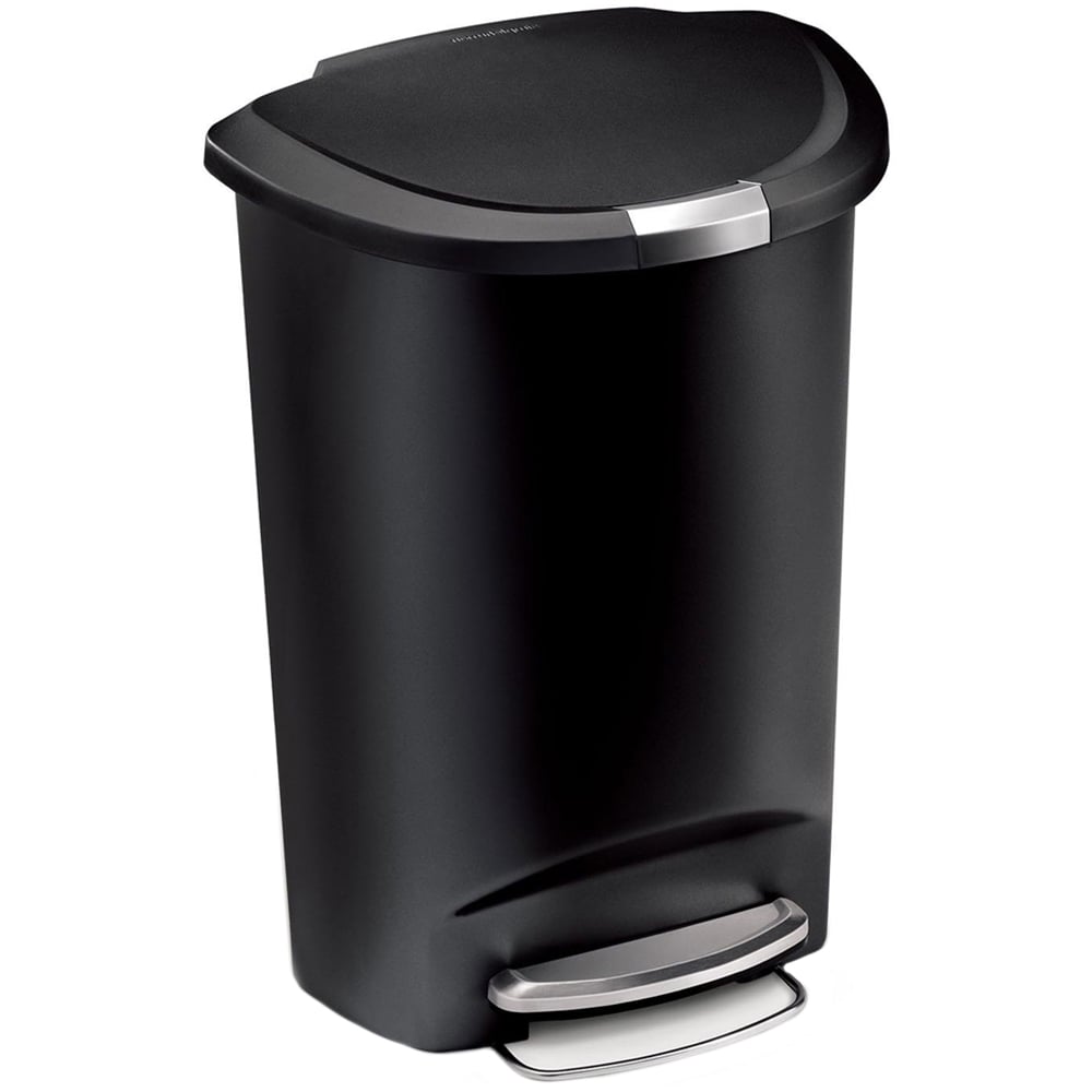 This 50L semi-round pedal bin offers a practical and stylish waste disposal solution for your home. Its large capacity is perfect for busy households, while the flat back allows for space-saving placement against a wall. The strong steel pedal is designed to last, and our patented lid shox technology guarantees a smooth, silent close every time. A secure slide lock keeps contents contained, protecting against unwanted access from pets or children. For a clean and efficient waste disposal experience, this bin is perfectly compatible with our simplehuman code P liner – no bunching, no slipping.