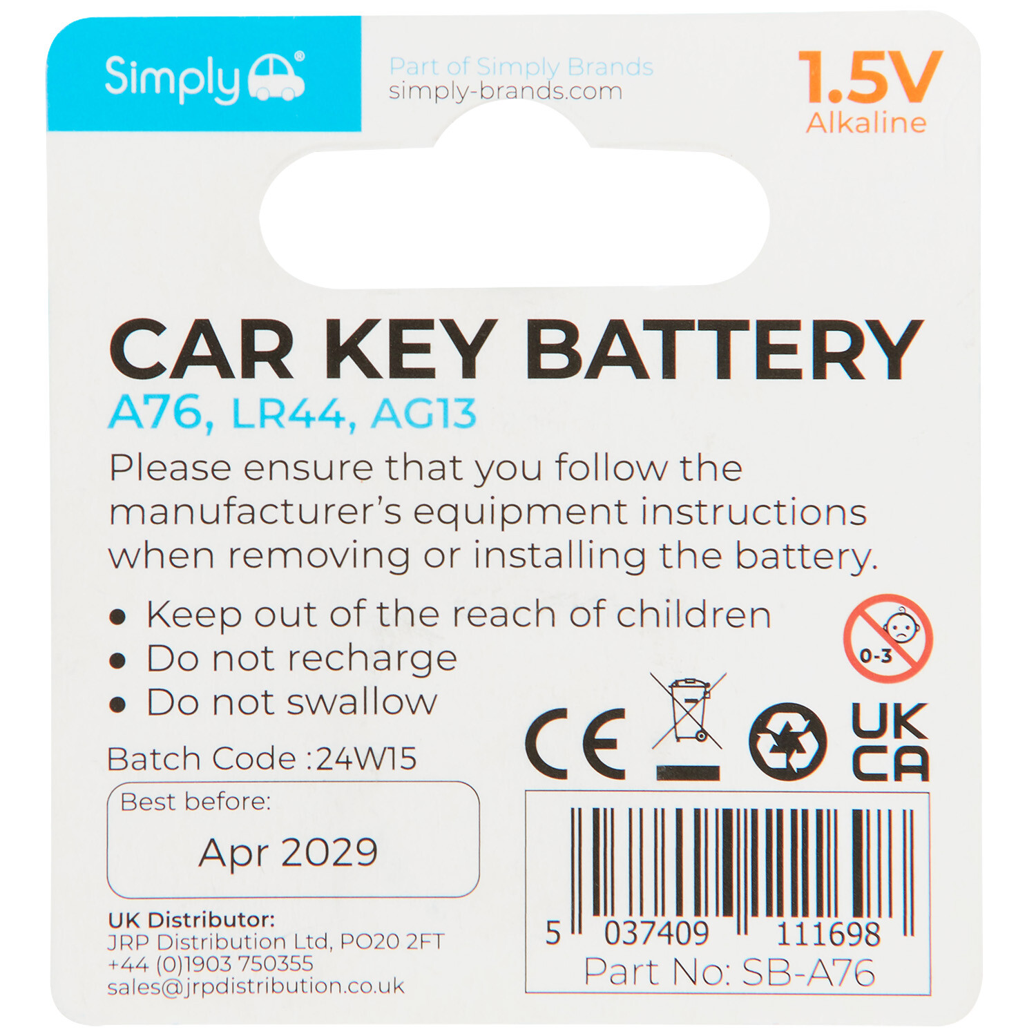 Simply 1.5V ALK A76 Car Key Battery Coin
