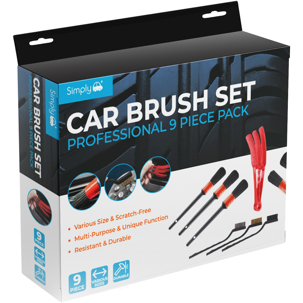 This nine-piece car brush set is a car enthusiast's essential. The set includes boar hair brushes in various sizes, three wire brushes in three different colours, and an air vent brush. Perfect for maintaining a pristine vehicle interior, each brush features an ergonomically designed handle for comfortable and firm grip.