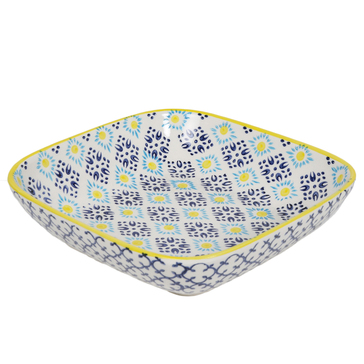 The Amari 8" square bowl adds a touch of bold style to your dinnerware. Perfect for breakfast, lunch, or dinner, this charming bowl comes in two colours and features a unique, eye-catching, intricate design. We'll select a design for you at random when you order.