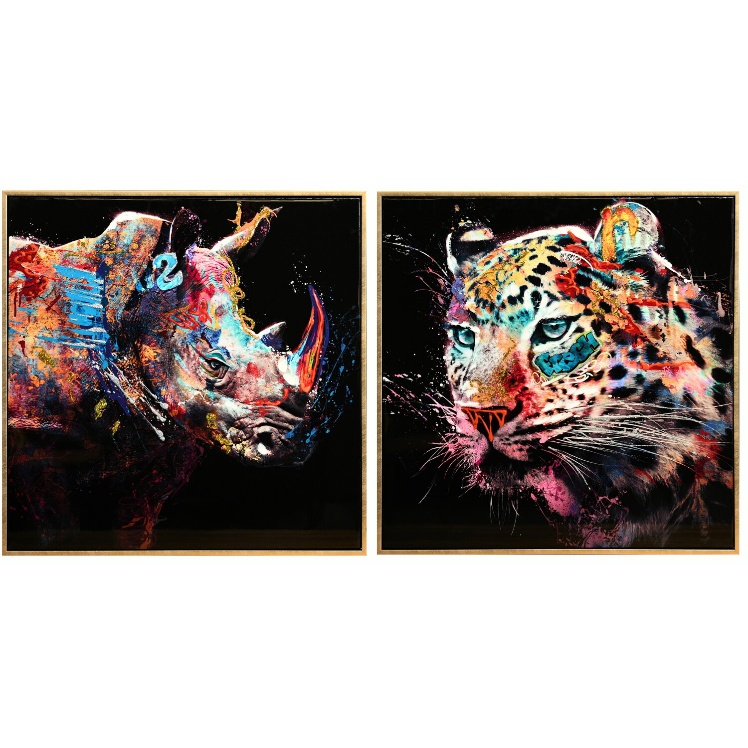 Bring the wild indoors with this vibrant Gloss Graffiti Effect Wildlife Canvas! Featuring majestic animals like rhinos, leopards, and gorillas, each canvas showcases a unique graffiti design for a modern twist. Bold colours pop against a dark black background, creating a stunning focal point for your living room, hallway, or bedroom. The design is a surprise – we'll choose one for you at checkout.