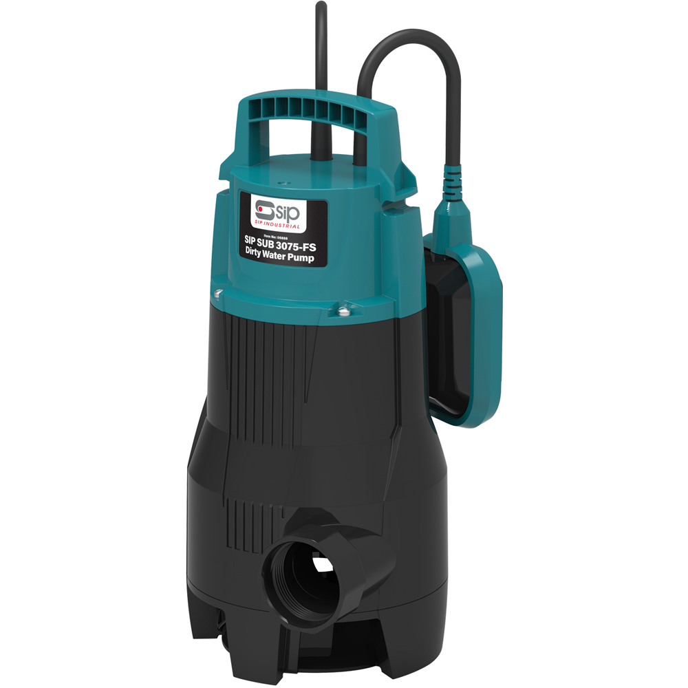 The SIP SUB 3075 Dirty Water Pump swiftly drains flooded cellars, basements, tanks, or even hot tubs. Perfect for intermittent use, this robust pump prevents costly water damage. Its powerful 750W (1HP) brushless induction motor boasts a 14,100 litre/hour maximum flow rate, efficiently moving water via its impeller. A fitted float switch, activating at 400mm, prevents overheating by ensuring the pump doesn't run dry. Water is discharged to a maximum height of 8 metres via the pump outlet. This pump handles particles up to 35mm in diameter, making it ideal for dirty water applications. Its lightweight, compact design includes a carry handle for easy portability (7-metre maximum operating depth) and a power cable hook for safety. A high-grade carbon steel pump shaft ensures longevity, and a generous 10-metre power cable provides versatility. Backed by a SIP 2-year standard silver warranty*.