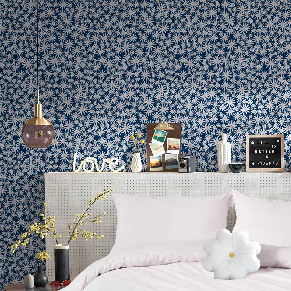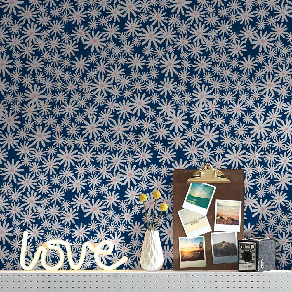 Bring the beauty of nature indoors with Skinny Dip Daisy Wallpaper, a vibrant design featuring cascading daisies in classic blue, accented with pops of colour and shimmering mica inks for a touch of movement and a trendy look. This lively and joyful design complements a range of décor styles. Its super easy to hang application ensures a quick and simple installation.