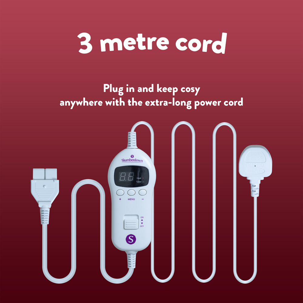 Wrap up in the wonderfully warm embrace of the Slumberdown Comfy Hugs Heated Throw. Its luxuriously soft fleece and stylish teal stitched stripe design will add a touch of comfort and elegance to those chilly evenings. Enjoy complete control over your warmth with 10 temperature settings and a handy timer function, letting you tailor the heat to your perfect level. The extra-long 3-metre cord provides ample reach, whether you',re relaxing on the sofa or snuggling up in bed with a good book. And for ultimate convenience, the removable controller allows for easy machine washing. Experience cosy comfort, effortlessly.