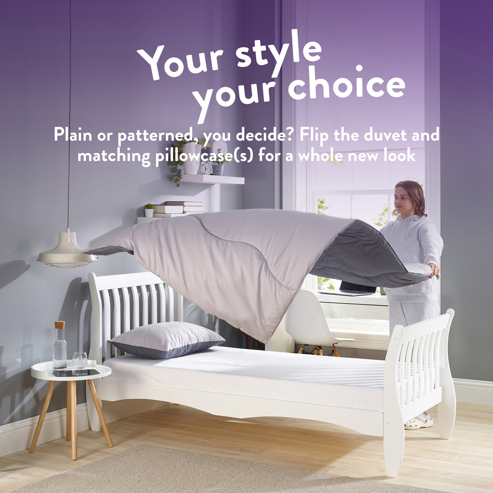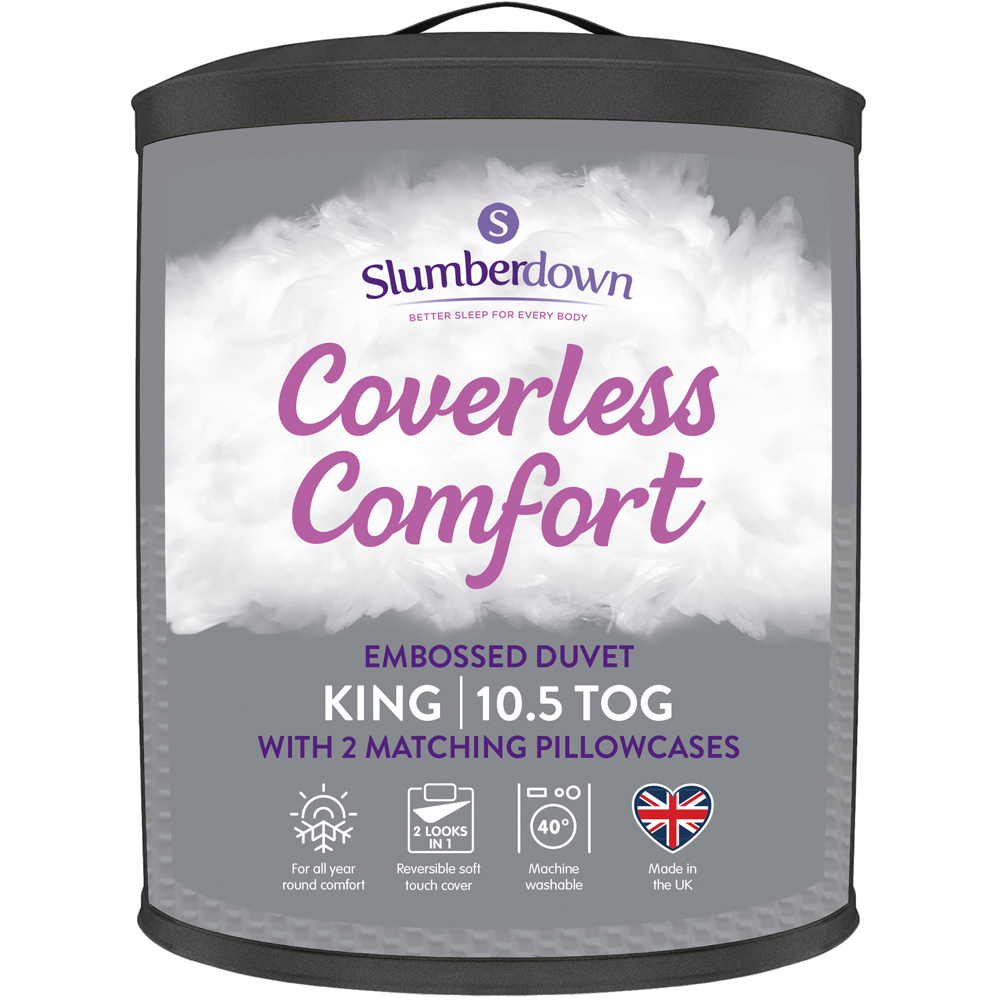 Experience the effortless comfort of the Slumberdown King Coverless 10.5 Tog Waffle Duvet Set. This stylish and convenient duvet simplifies your bedtime routine with a reversible embossed cover offering two designs in one. Available in a range of colours and finishes, with matching pillowcases to complete the look, it’s perfect for guests, travellers, or anyone seeking a fuss-free sleep solution. Made with a soft-touch cover and filled with fluffy hollowfibre, this mid-weight 10.5 tog duvet provides year-round comfort. It’s far more hygienic than washing duvet covers alone, is easily machine washable and quick-drying – tumble dry on low in winter or line dry in summer. It comes in a reusable bag. Enjoy a better night',s sleep, tailored to your needs.
