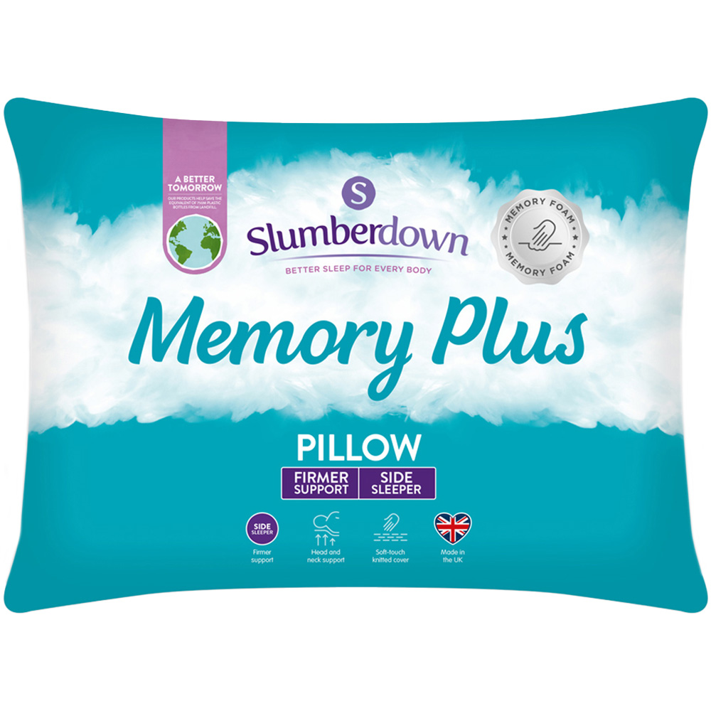 At Slumberdown, we believe everyone deserves a truly restful night',s sleep. The Memory Plus Firm Pillow helps you achieve this with its luxurious design. This exceptional pillow expertly combines supportive memory foam with a plush Cloud Cluster filling for a superior sleep experience. The pressure-relieving memory foam contours to your head and neck, easing pressure points and potentially reducing neck and back discomfort. Its firm support makes it ideal for side sleepers and those who prefer a deeper, more supportive pillow. This unique combination delivers both comforting softness and dependable stability. For easy maintenance, simply sponge clean as needed. Enjoy the ultimate in firm support and blissful comfort.