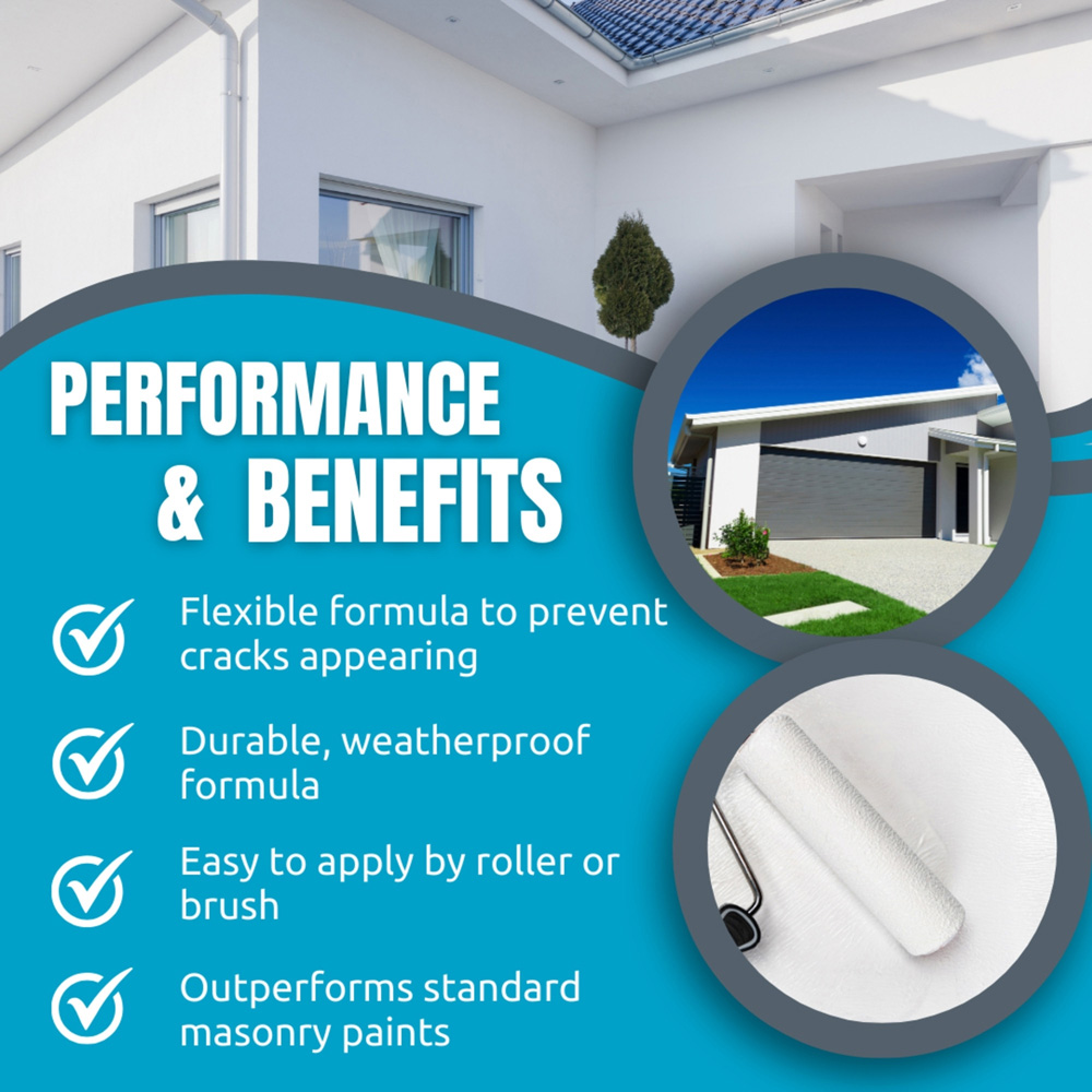 Transform your walls with our superior smooth wall paint, engineered for exceptional elasticity. Unlike cheaper alternatives, this paint's unique flexing properties provide outstanding crack-bridging during application. After a 24-48 hour curing period, it moves with the surface, adapting to expansion and contraction without cracking - guaranteeing performance across all seasons and weather extremes. Rigorous lab testing ensures long-lasting durability, even in harsh conditions. The microporous finish prevents water ingress while allowing the wall to breathe, releasing trapped moisture and preventing dampness. This superior paint delivers a beautiful, protective, waterproof finish that stands the test of time.