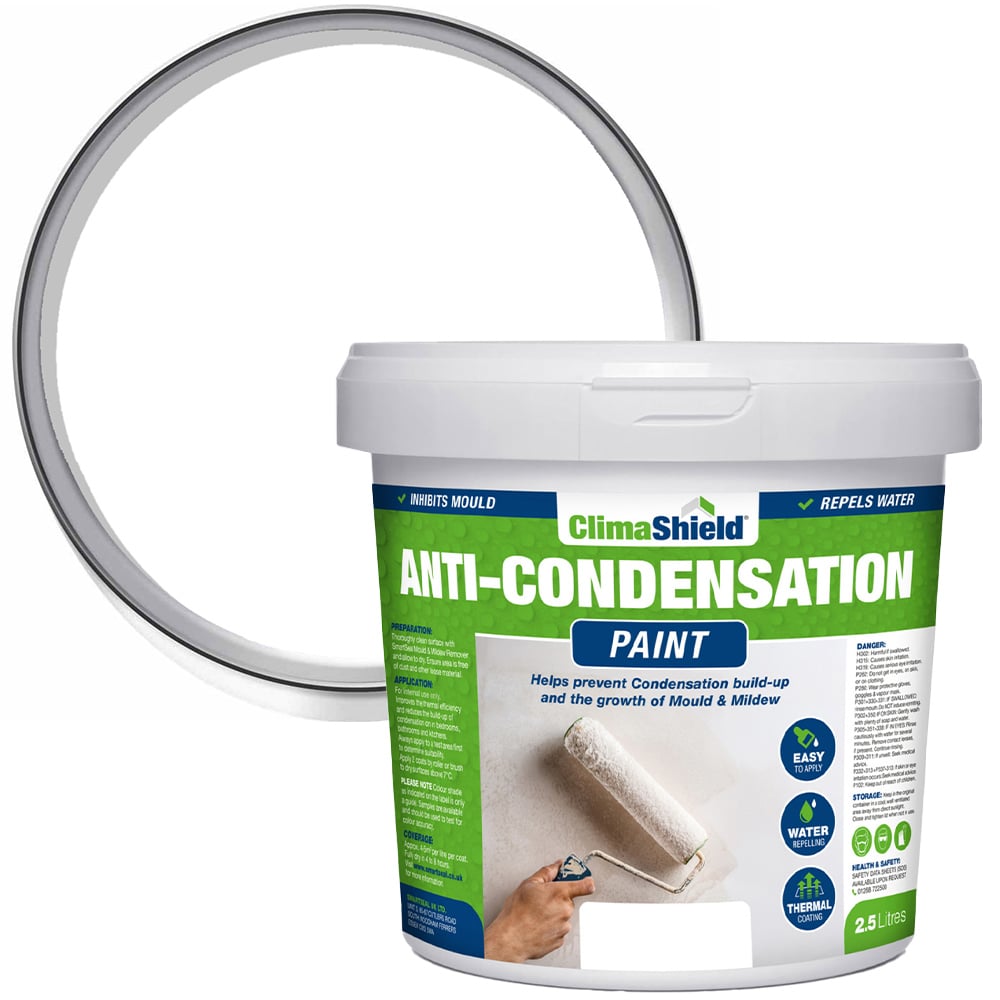 Transform your bathroom, kitchen, or bedroom with SmartSeal's 2.5L Anti-Condensation Paint. This brilliant white paint delivers a beautiful, long-lasting finish while actively combating mould and significantly reducing condensation by up to 95%. Its potent anti-mould formula eliminates harmful allergens and contaminants, creating a fresher, healthier living space. Ideal for rooms prone to moisture build-up, including those in poorly insulated properties or with cold external walls, this paint provides superior protection against black spot mould.