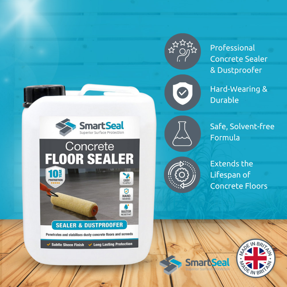 Transform your concrete floors with SmartSeal's 5L Concrete Floor Sealer. This ready-to-use sealer and dustproofer penetrates deep, stabilizing dusty concrete floors and screeds. Perfect for kitchens, factories, warehouses, sheds, garages, and workshops, its low-viscosity formula ensures easy application with a roller, sprayer, or brush. Quickly sealing most concrete types, it binds loose dust, extending the life of your floors. Once dry, a subtle sheen revitalizes your flooring, giving it a brand-new look.