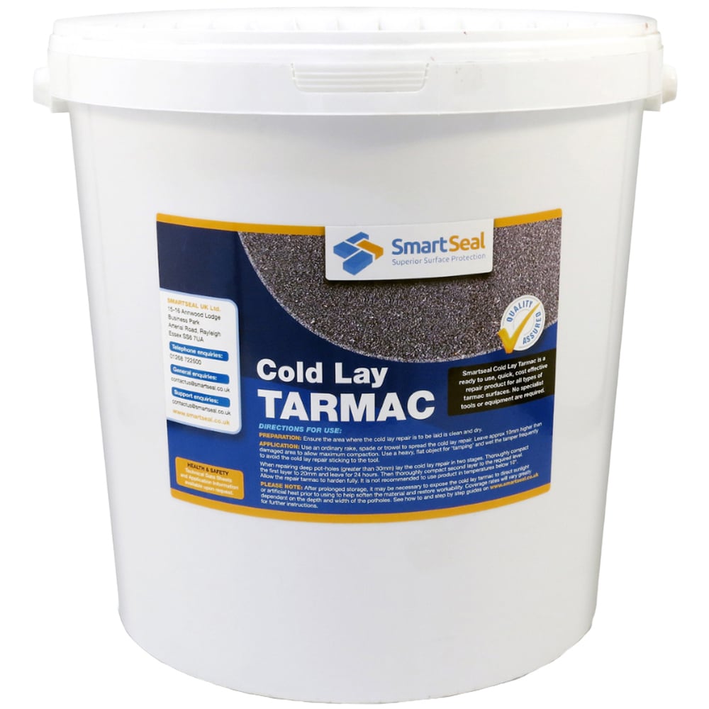Get professional-looking repairs done quickly and easily with this 12.5kg Cold Lay Repair Tarmac. Ideal for patching holes and cracks in paths and driveways, this dark red tarmac is formulated for simple application and effective results. For best results, compact the first 20mm layer and leave for 24 hours before compacting a second layer to the desired level. Allow to fully harden. Application below 10°C is not recommended. Use the included 0.25 litre primer on the repair area before spreading the tarmac approximately 10mm above the damaged surface to allow for compaction. Use a rake, spade, or trowel for even application.