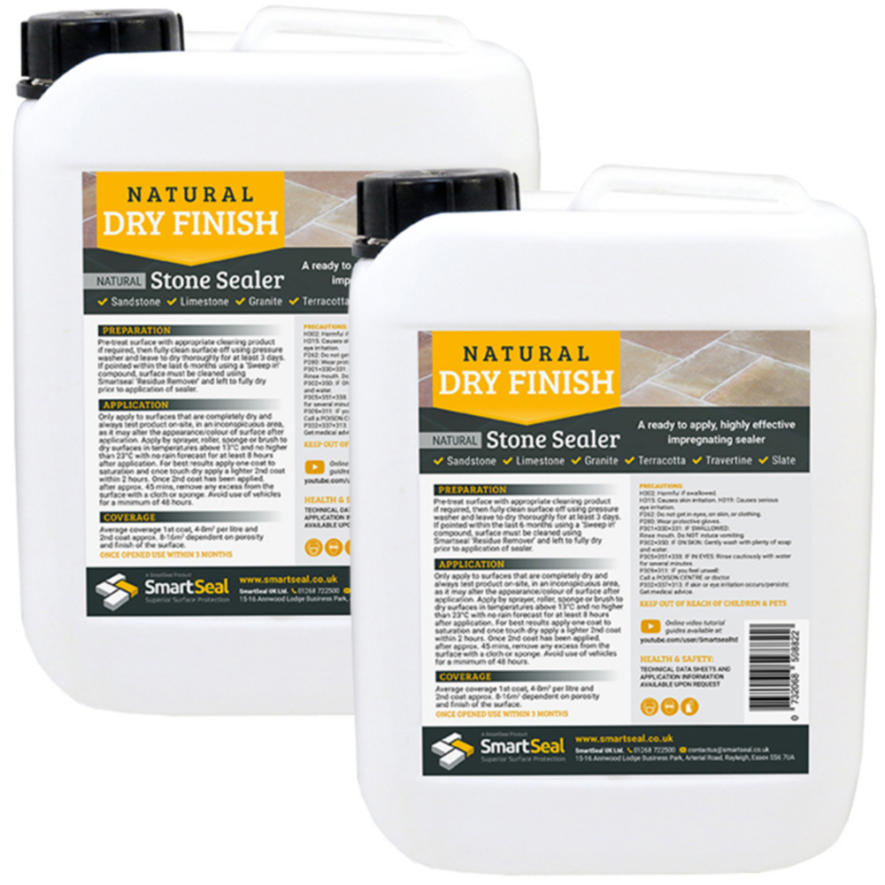 Fortify your home's exterior with this 5L Natural Stone Sealer, a two-pack providing effective, impregnating protection for sandstone, granite, limestone, Indian sandstone, and slate. It creates a completely dry finish, touch-dry in 2-3 hours and waterproof within 24 hours. The sealer alters the stone's porous structure for superior water repellence and stain resistance, lasting up to five years and guarding against moss, algae, and lichen. A second, light mist coat can be applied if the stone allows. Coverage per litre: first coat – sandstone 5m², limestone, terracotta, travertine, and slate 8m², granite 12m², second coat – sandstone 7.5m², limestone, terracotta, travertine, and slate 12m², granite 16m.