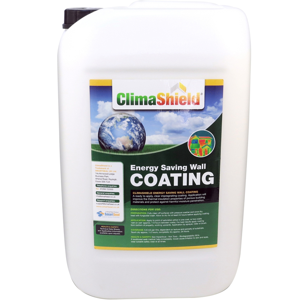 Transform your walls with Climashield Energy Efficient Wall Coating, a clear, super-hydrophobic finish providing superior water resistance for both interior and exterior applications. This high-performance coating prevents water ingress into walls and brickwork, minimising heat loss through damp substrates and significantly reducing energy bills for domestic and commercial properties. Effortlessly applied by sprayer or roller in a single coat, Climashield leaves the original appearance unchanged while offering robust protection against damp and water-ingress related structural damage. Importantly, the coating is water vapour permeable, ensuring your property remains breathable. Enjoy lasting protection – expect a product lifespan exceeding 15 years, with coverage ranging from 4-6 m² per litre depending on the substrate',s porosity.