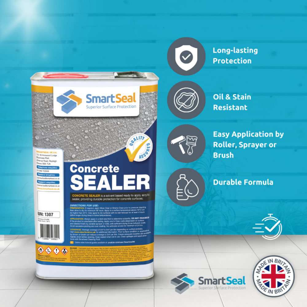 Upgrade your concrete floors with SmartSeal's 5L External Concrete Sealer. This three-pack of solvent-based sealers delivers lasting protection against wear, weather, and damage, keeping your surfaces looking pristine for years to come. Ideal for block paving and concrete floors, its durable formula won't blister or peel, providing a superior protective layer. Application is quick and easy using a sprayer or roller, with each litre covering 4-6m.