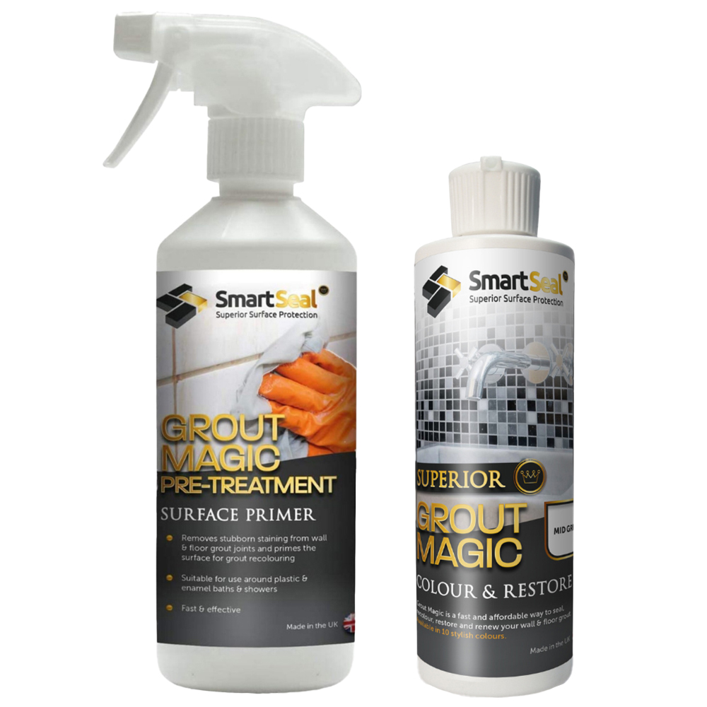 SmartSeal Pre-Treatment Primer 500ml and Mid Grey Paint 237ml Grout Magic Bundle