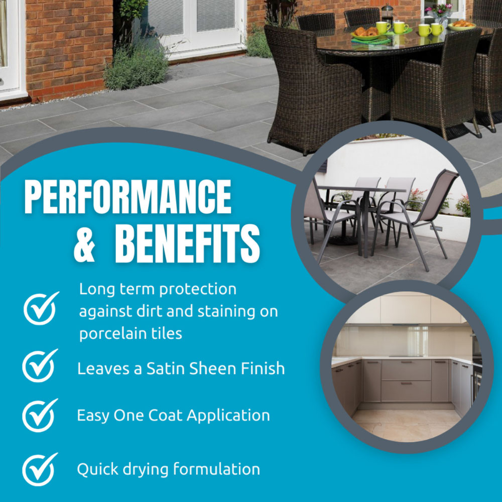 Upgrade your porcelain and ceramic tiles with SmartSeal's advanced protective coating. This breathable, ultra-durable sealer enhances colour and adds a subtle, wet-look sheen, protecting indoor and outdoor tiles on floors, walls, and patios for years to come. Its ready-to-use formula offers quick drying and superior protection against oil and water-based stains. Simply apply a thin coat with a microfiber cloth, paint pad, or flat mop for a stunning finish. Provides ultra-strength sealing for long-term protection. Available in a 1L pack, covering 10-20m² depending on surface texture and porosity.