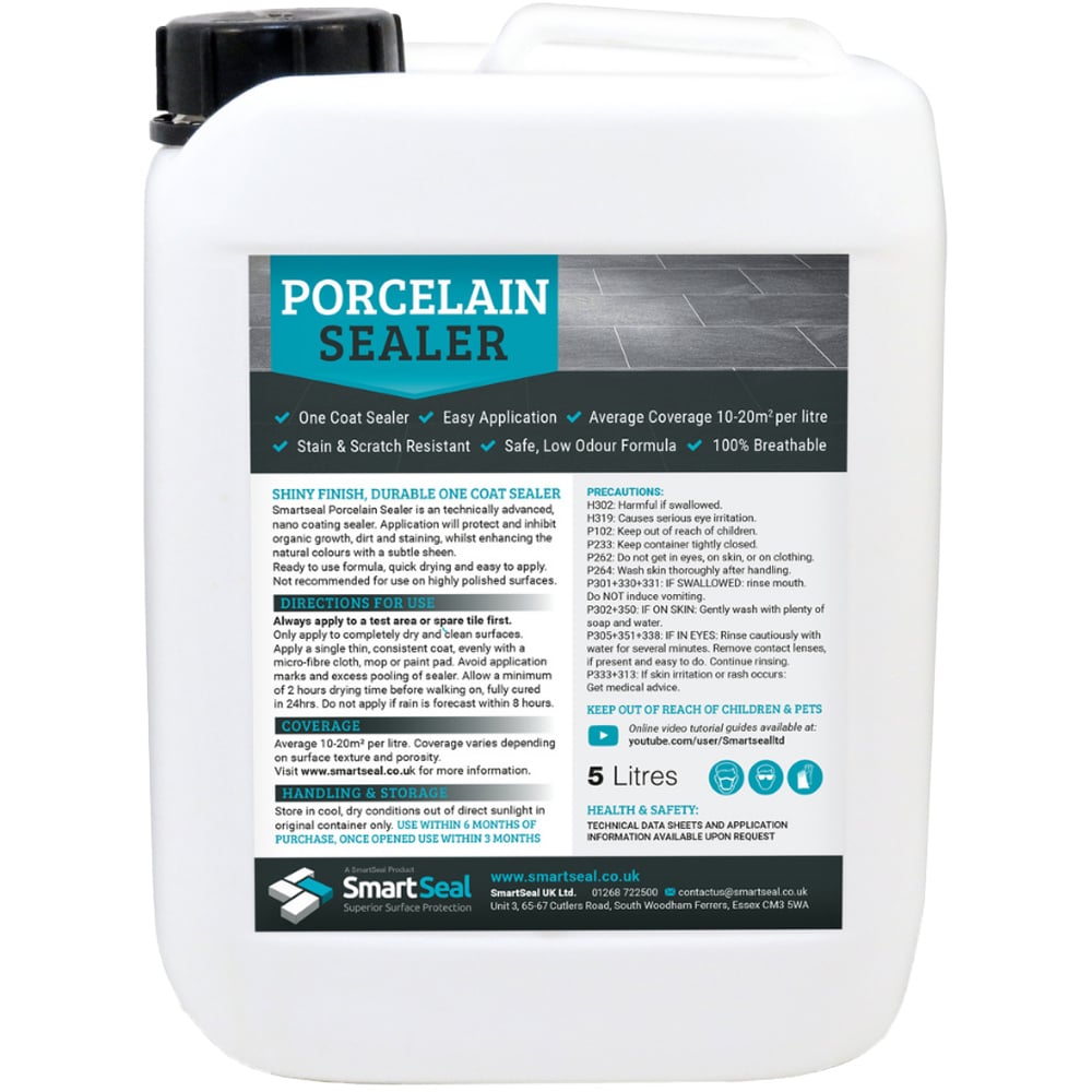 Transform your porcelain and ceramic tiles – indoors or out – with SmartSeal. This advanced, breathable sealer delivers ultra-durable protection for patios, walls, and floors, enhancing their colour with a subtle, satin sheen. Shield your tiles from oil and water-based stains while enjoying a long-lasting, beautiful finish. Simply apply a thin coat with your preferred applicator (microfiber cloth, paint pad, or flat mop) for quick, easy application. The result? A stunning, wet-look sheen that elevates any space. This ready-to-use formula provides superior, long-term protection. Available in a 5L pack, offering coverage of up to 10-20m² per litre (coverage may vary depending on surface texture and porosity.