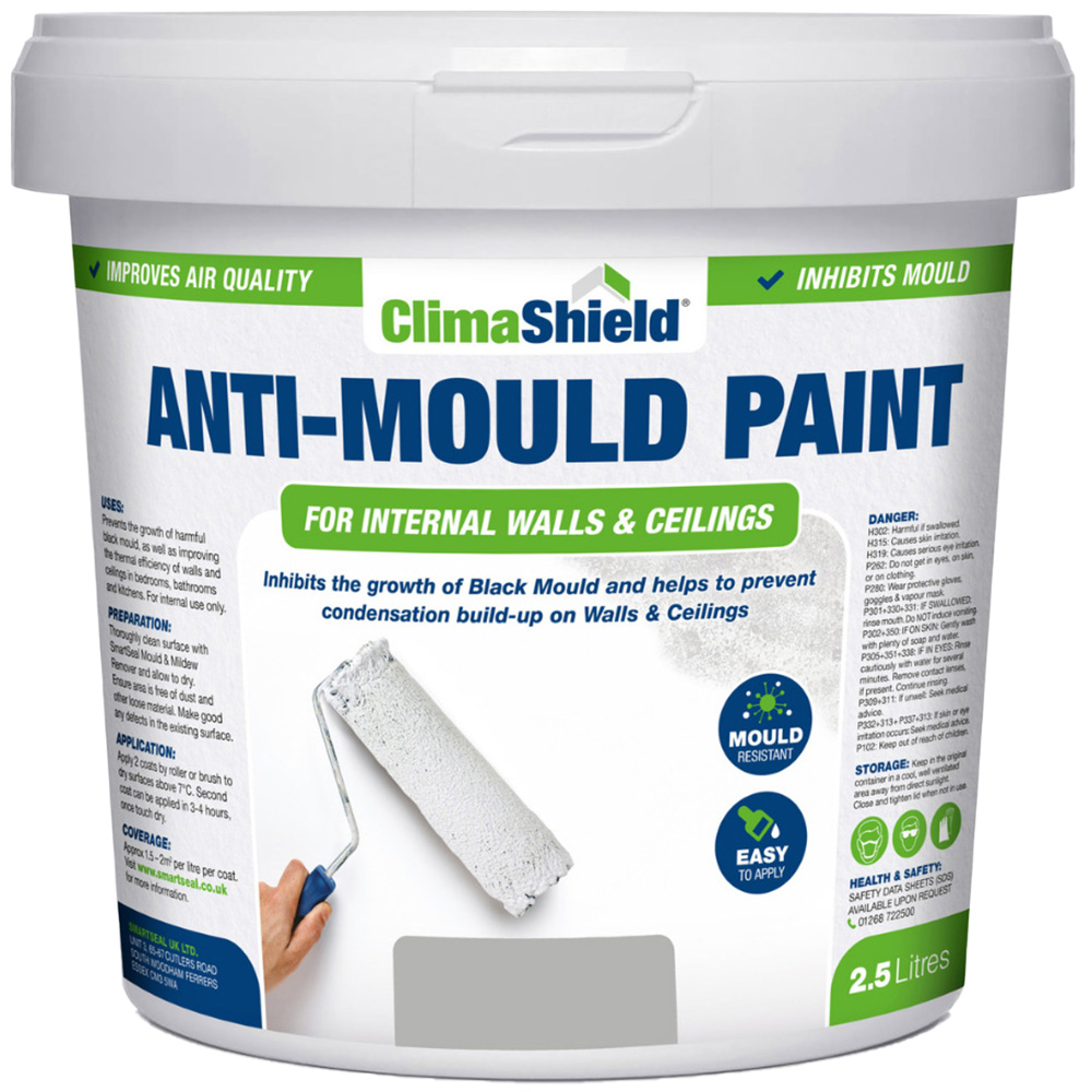 Transform your home with SmartSeal's 2.5L Anti-Mould Paint. This Wessex Stone light grey paint delivers a sophisticated matt finish while actively preventing the growth of harmful mould, mildew, and algae. Its active fungicide inhibits germination and spread, creating a healthier environment, especially beneficial for those with respiratory sensitivities. The low-VOC, solvent-free formulation contributes to improved indoor air quality. Suitable for walls, ceilings, and floors in bedrooms, bathrooms, kitchens, and basements, this paint provides effective mould resistance as a paint or membrane.